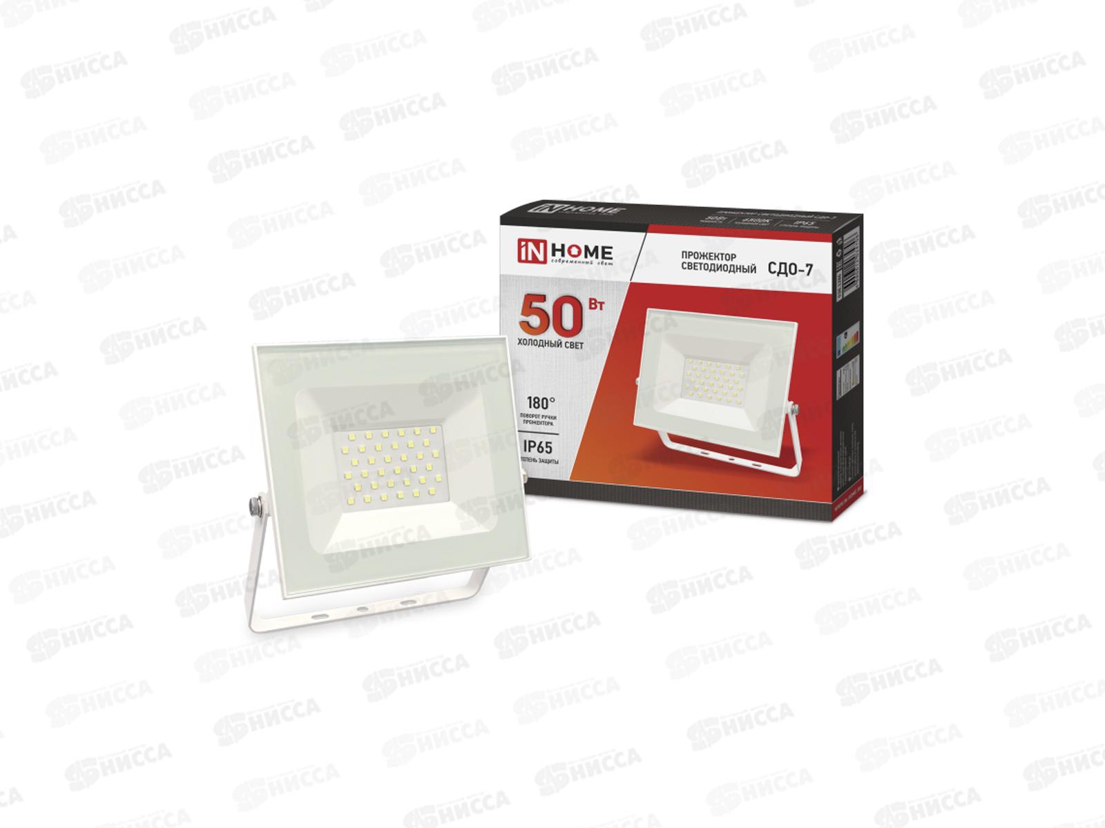 Код:394997; Прожектор светодиодный IN HOME СДО-7 50Вт 6500К белый IP65 *20