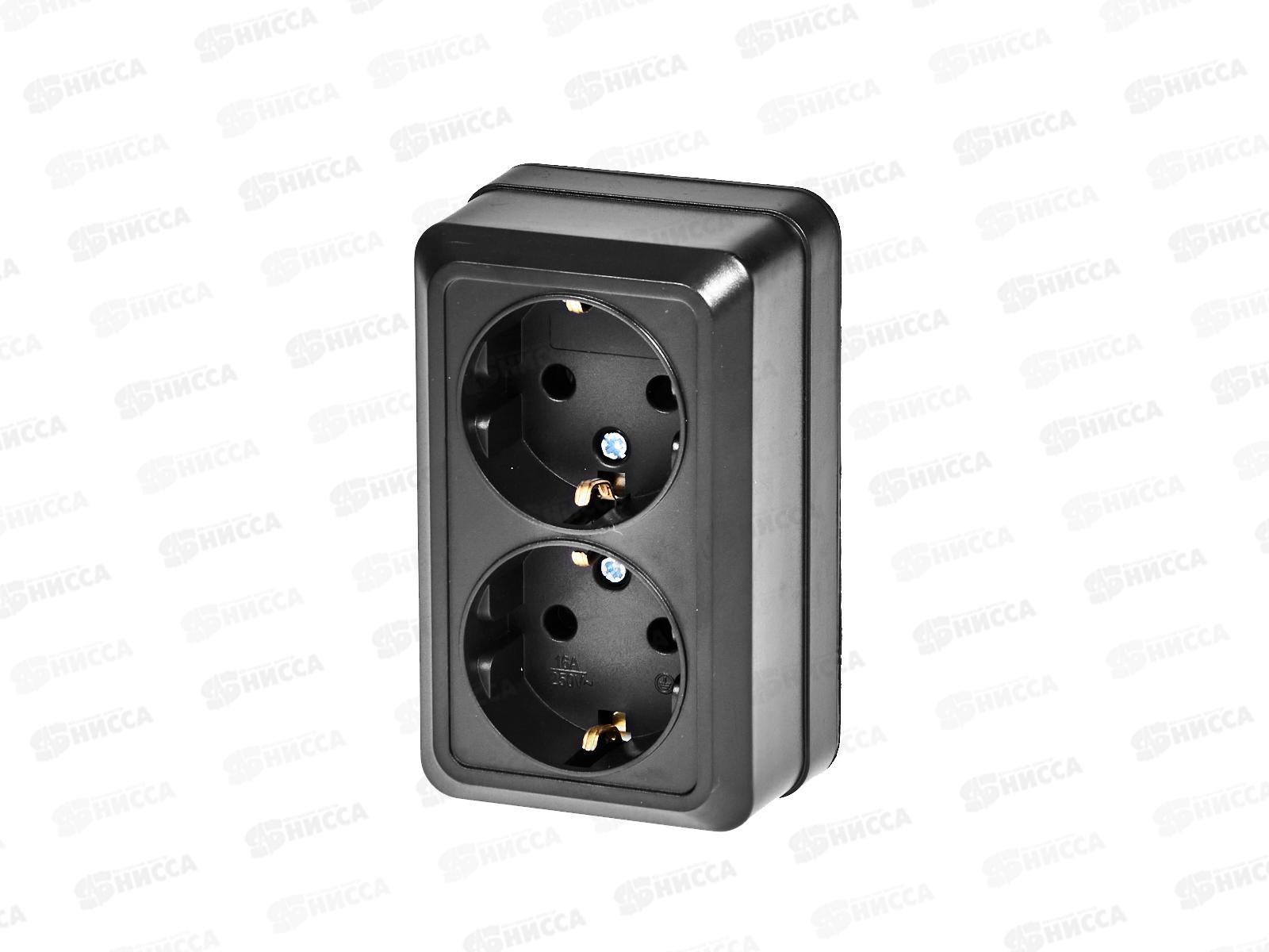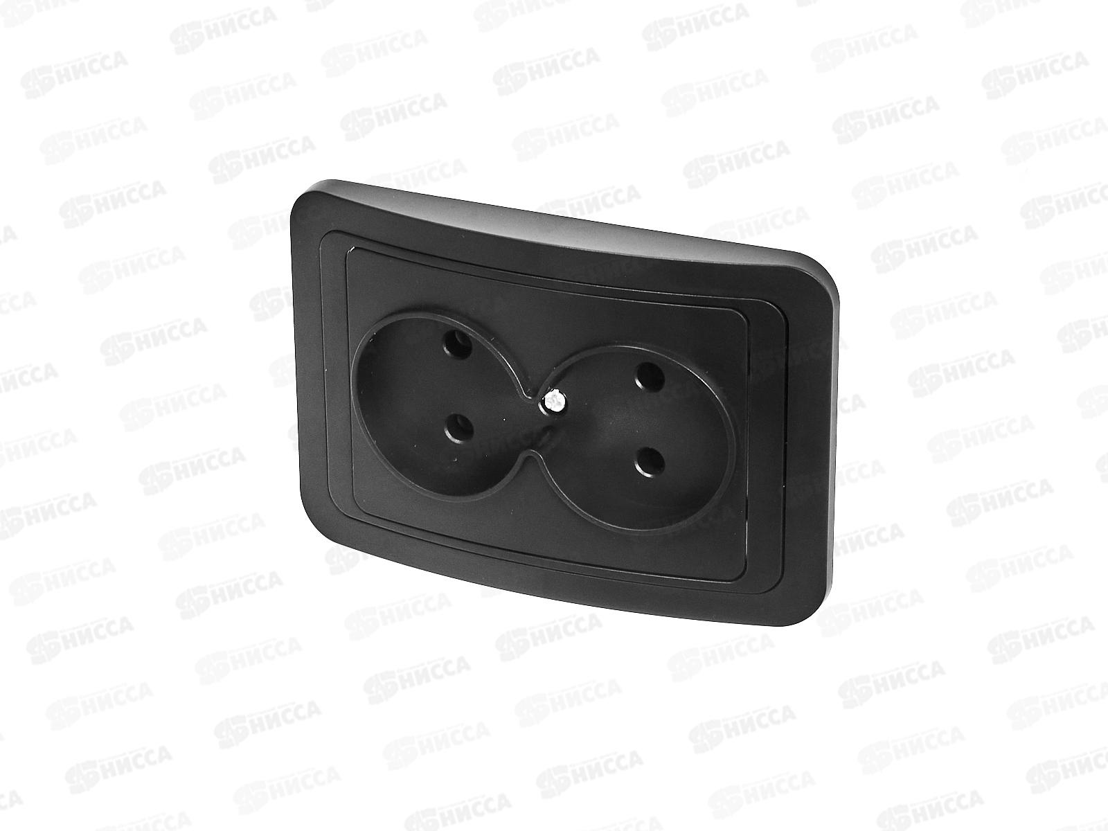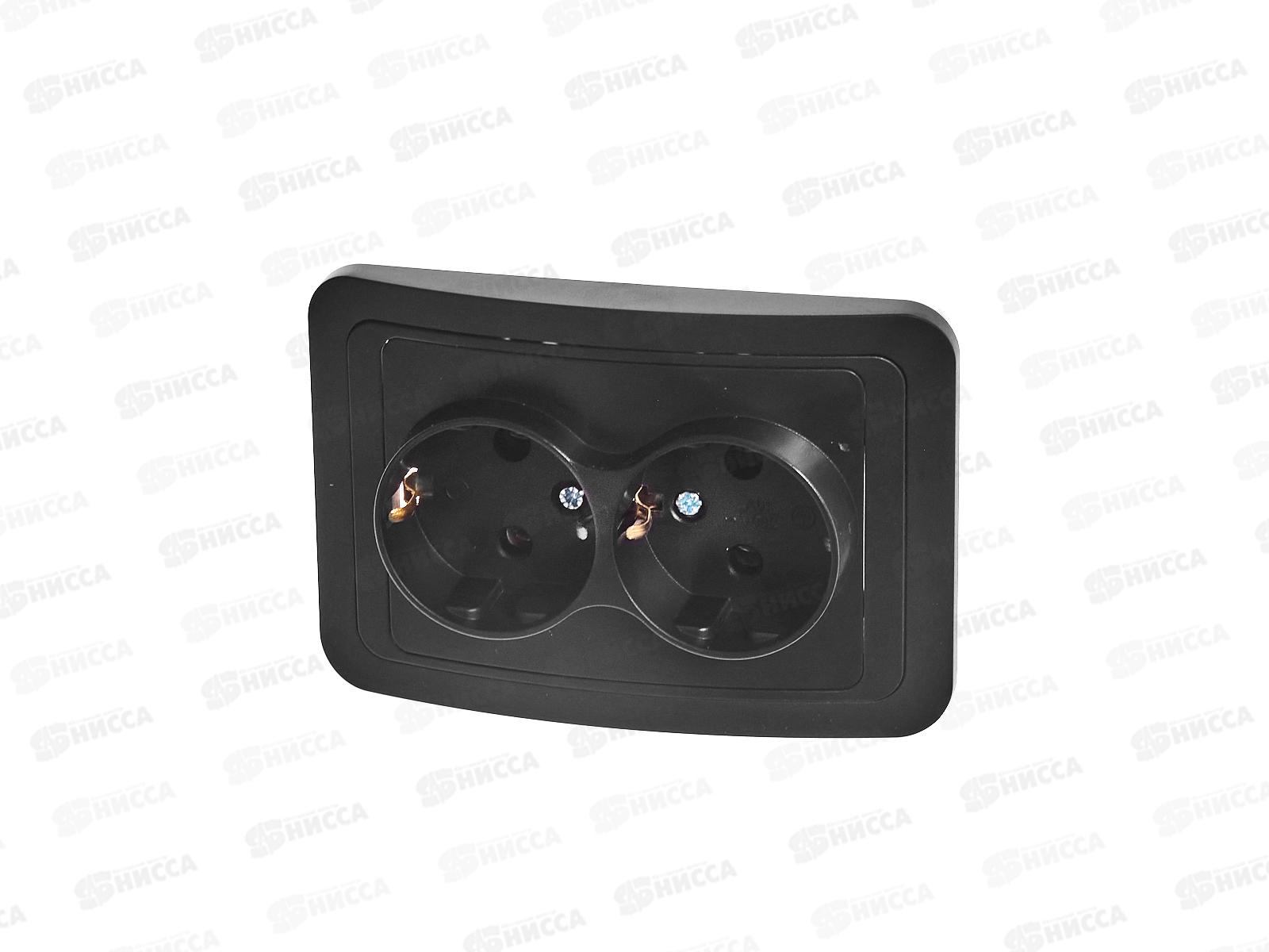 Код:561490; Розетка накладная CLASSICO двойная, с заземлением, черная, 2128B *10