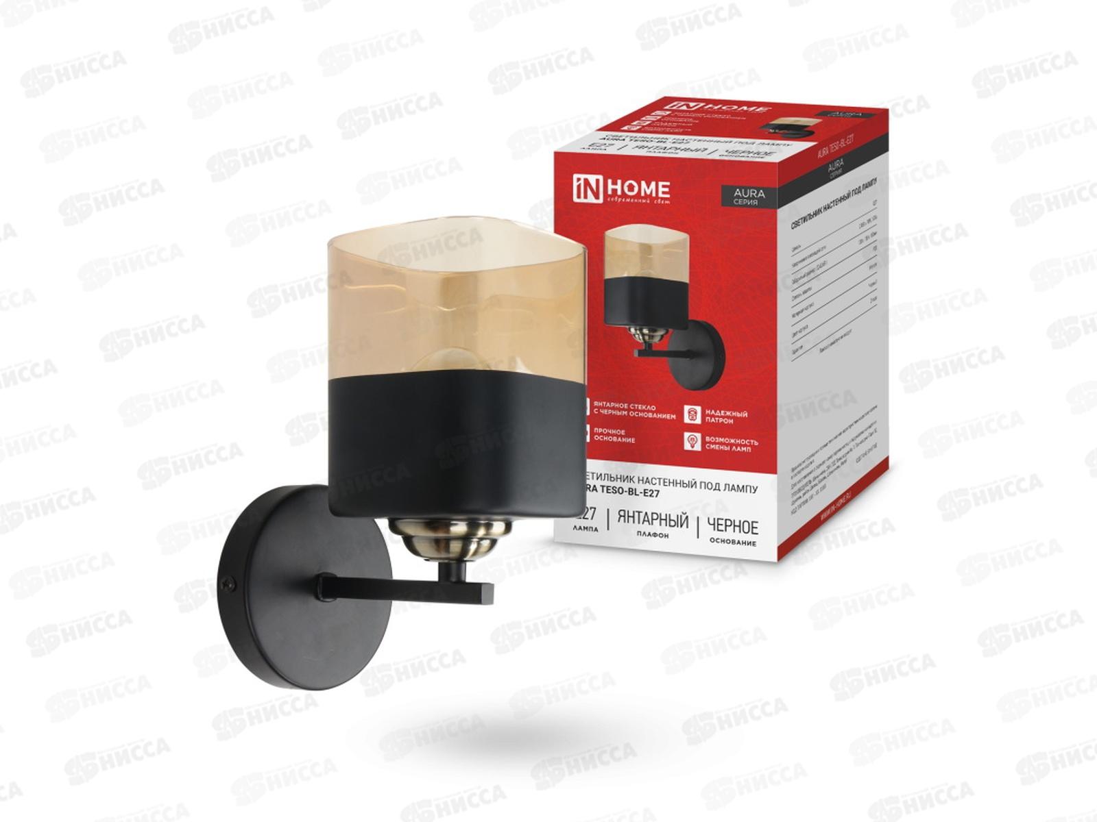 Код:582809; Светильник настенный под лампу AURA TESO-BL-E27 1хЕ27 янтарный плафон, черный корпус
