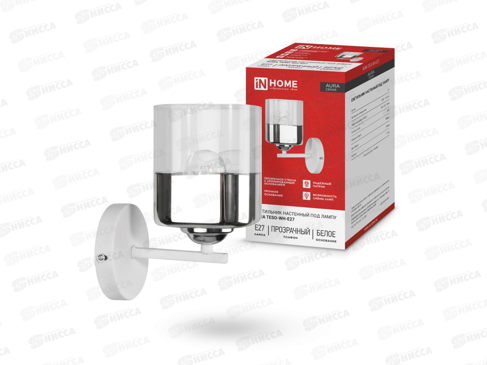 Код:582810; Светильник настенный под лампу AURA TESO-WH-E27 1хЕ27 прозрачный плафон, белый корпус IN HOME