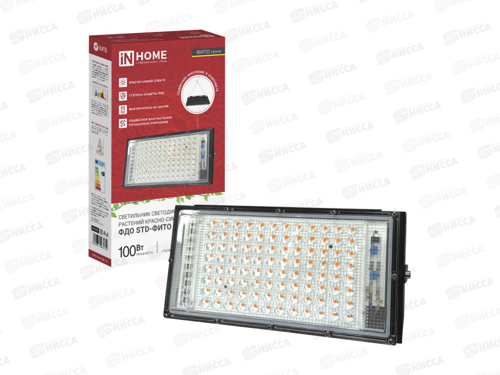 Код:605695; Прожектор светодный IN HOME STD-ФИТО 100Вт красно-синий спектр, черный, IP65