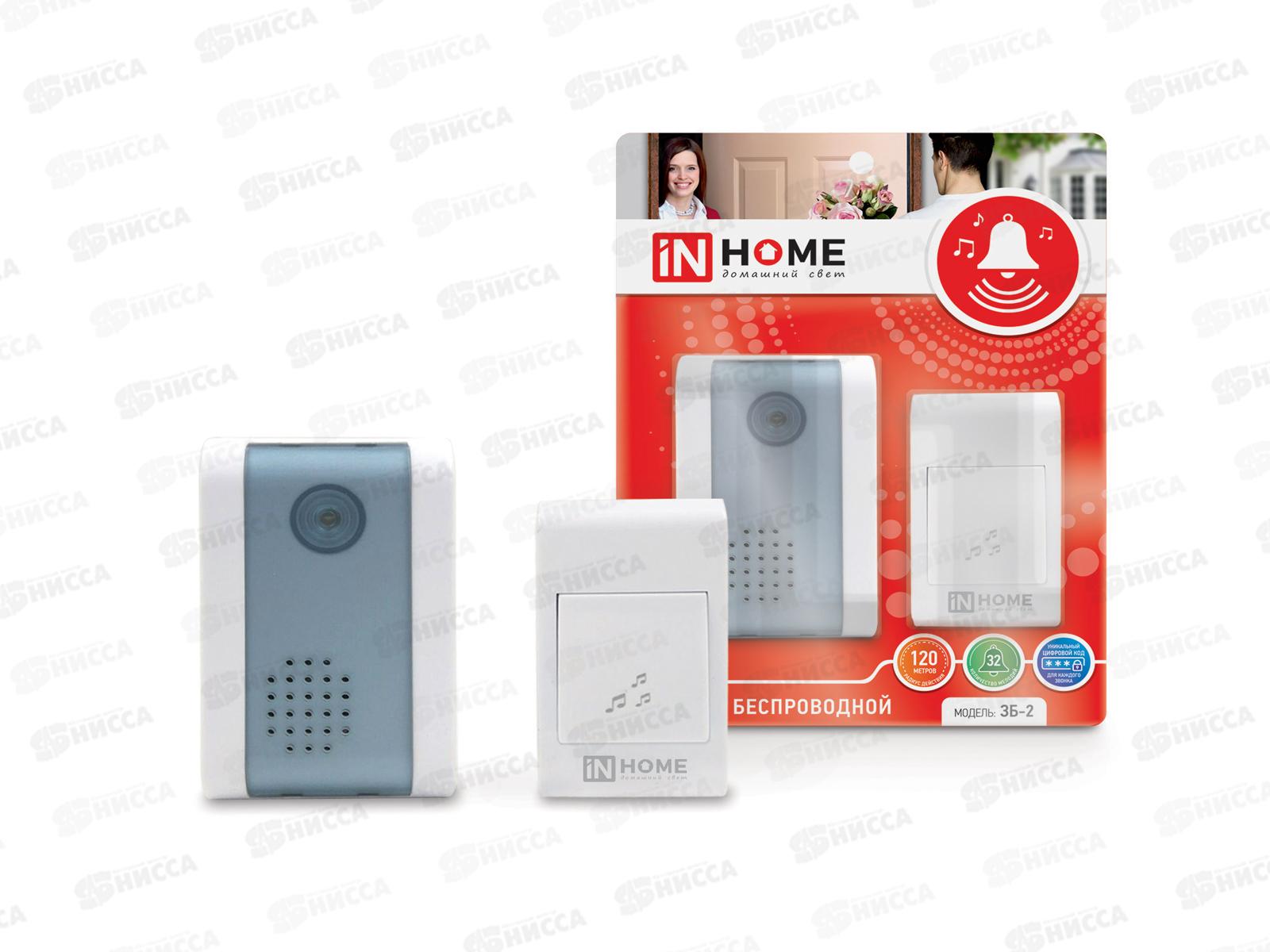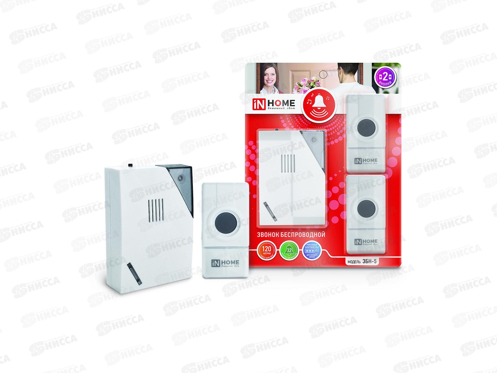 Код:312538; Звонок беспроводной IN HOME 3БН-5 2мелодии 125м с кнопкой подсветкой