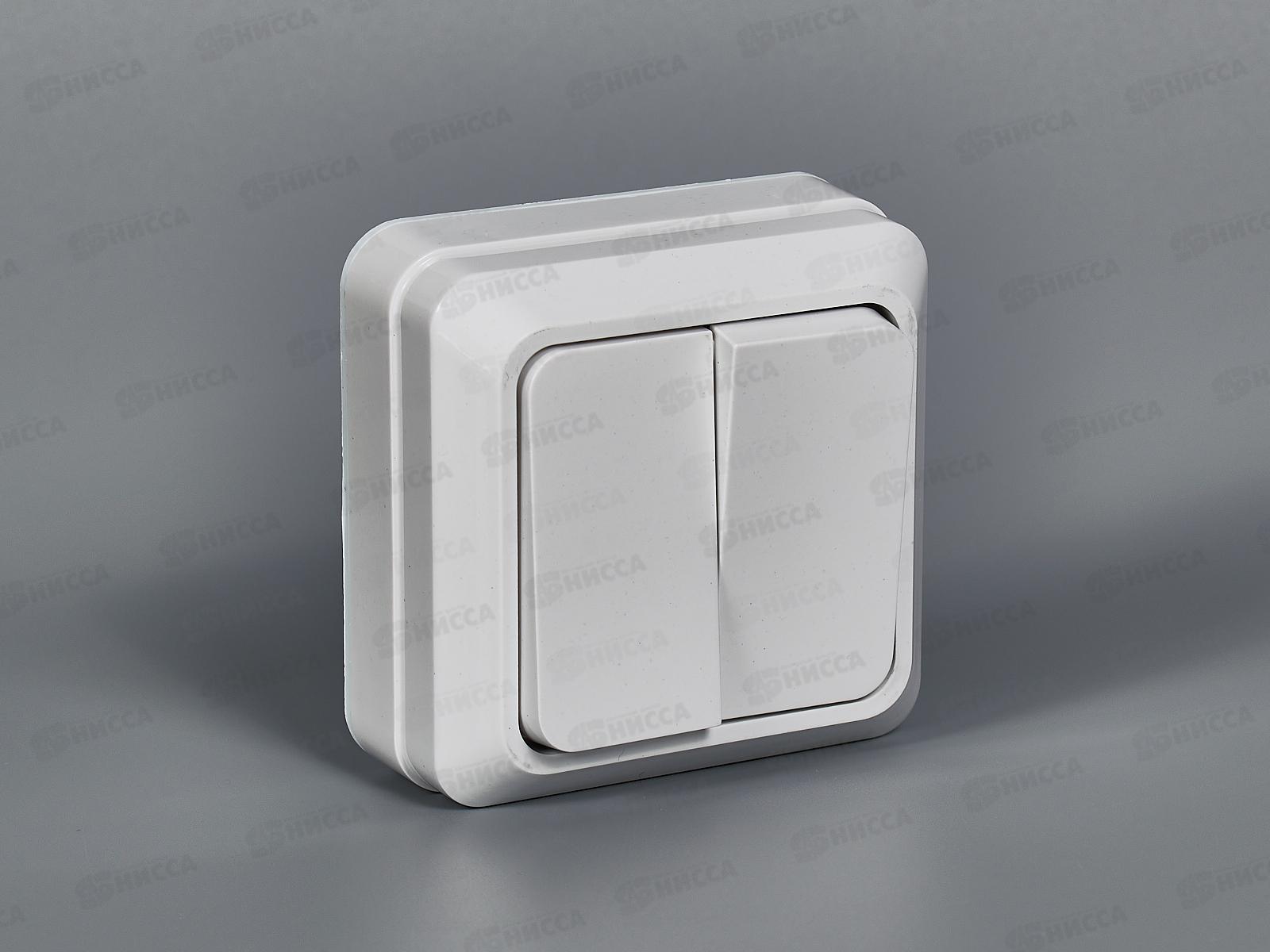 Код:484112; Выключатель накладной BOLLETO 2клавишный, белый, 7023*10