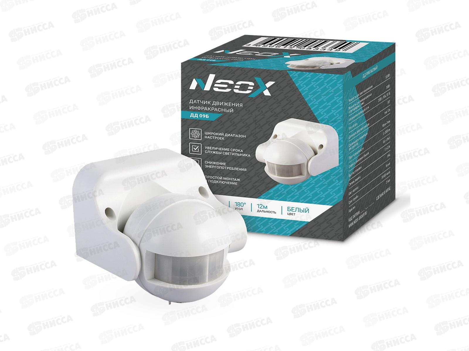 Код:538277; Датчик движения инфракрасный ДД-09Б 1200Вт 180гр. 12м белый NEOX