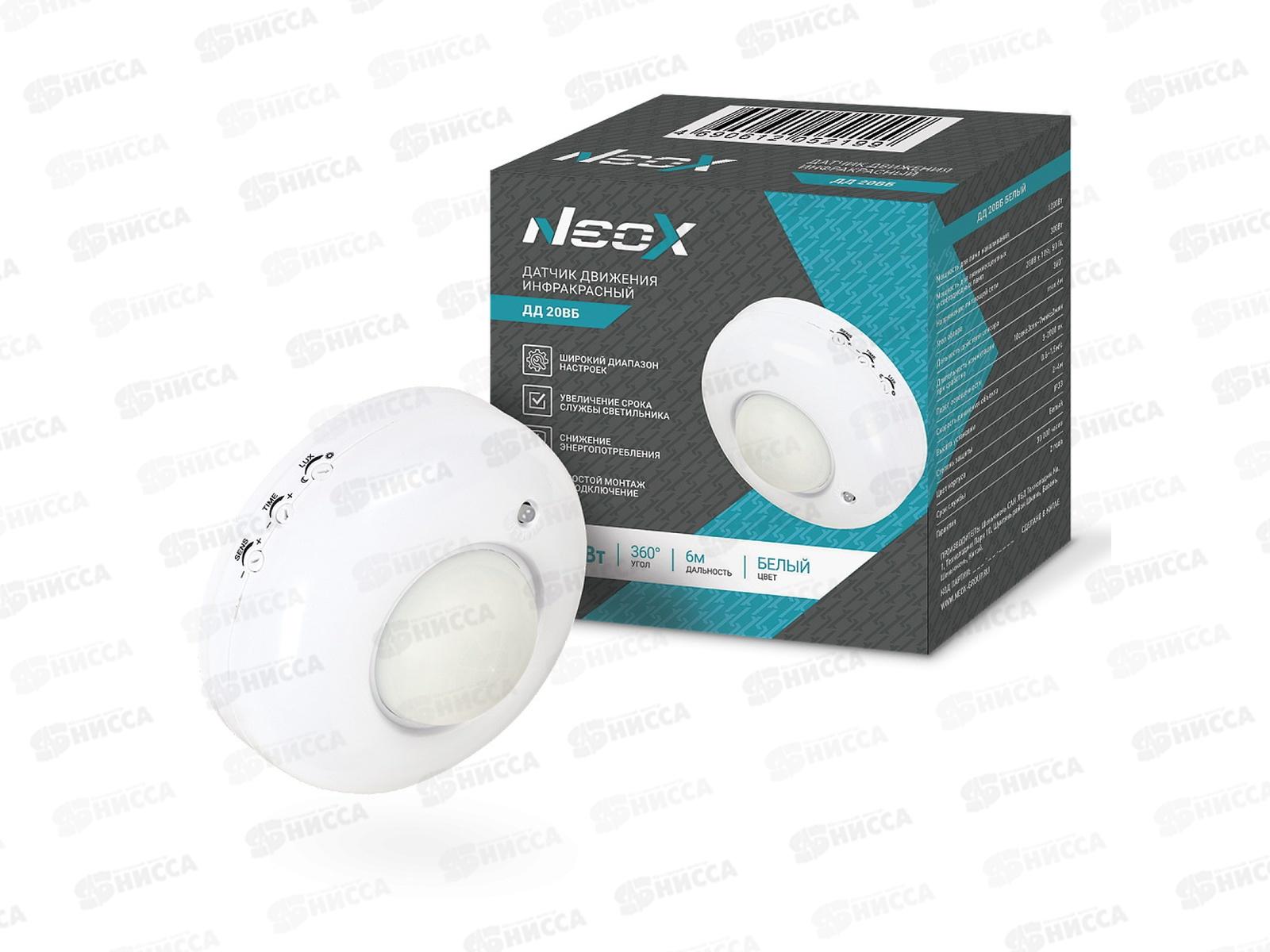 Код:538278; Датчик движения инфракрасный ДД-20ВБ 1200Вт 360гр. 6м белый NEOX