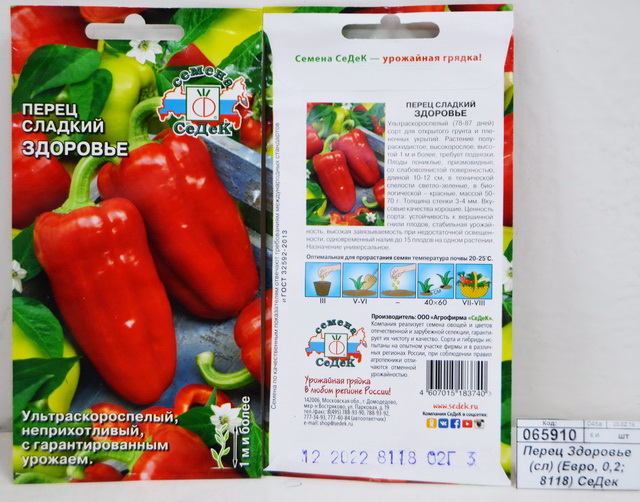 Код:065910; Перец Здоровье (сладкий) (Евро, 0,2 8118) СеДек +
