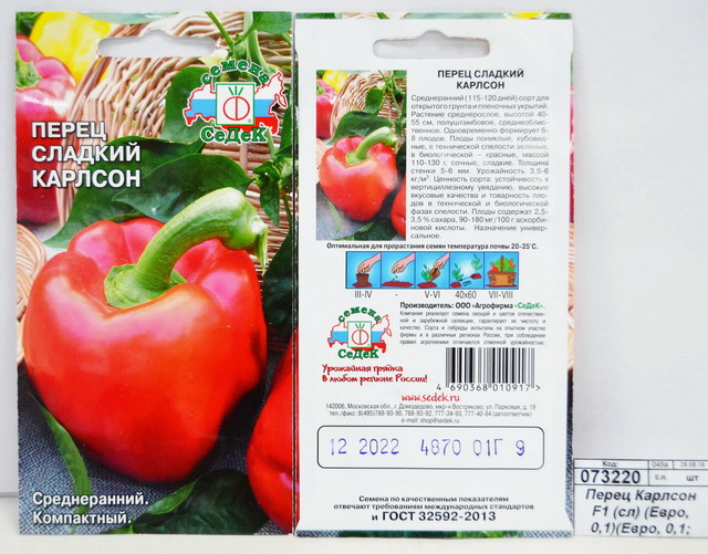 Код:073220; Перец Карлсон F1 (сладкий) (Евро, 0,1)(Евро, 0,1 6049) СеДек СРОК ДО 10.24
