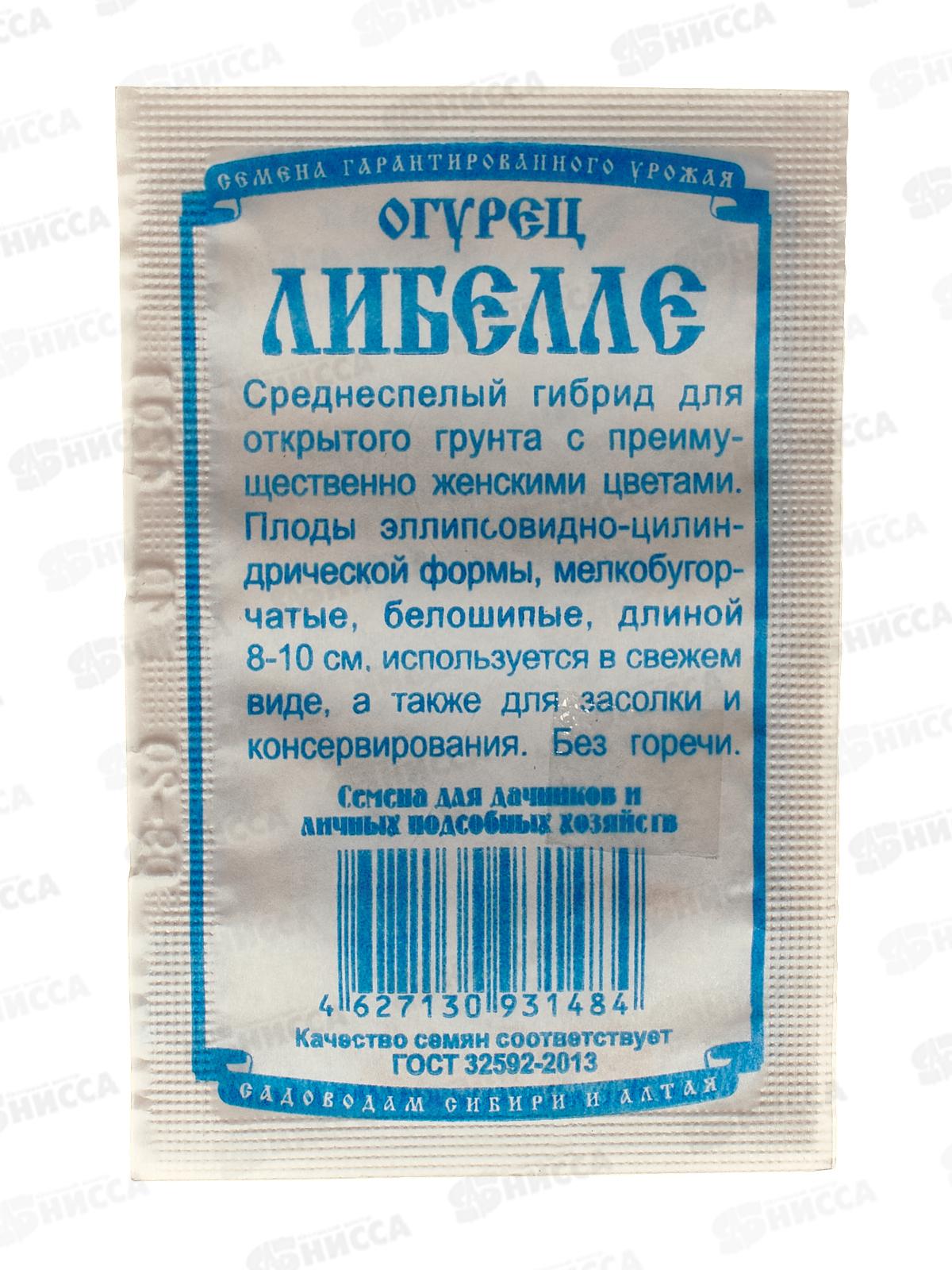 Код:009222; Огурец Либелле F1 (10шт белый пакет) ДемСиб *20 +
