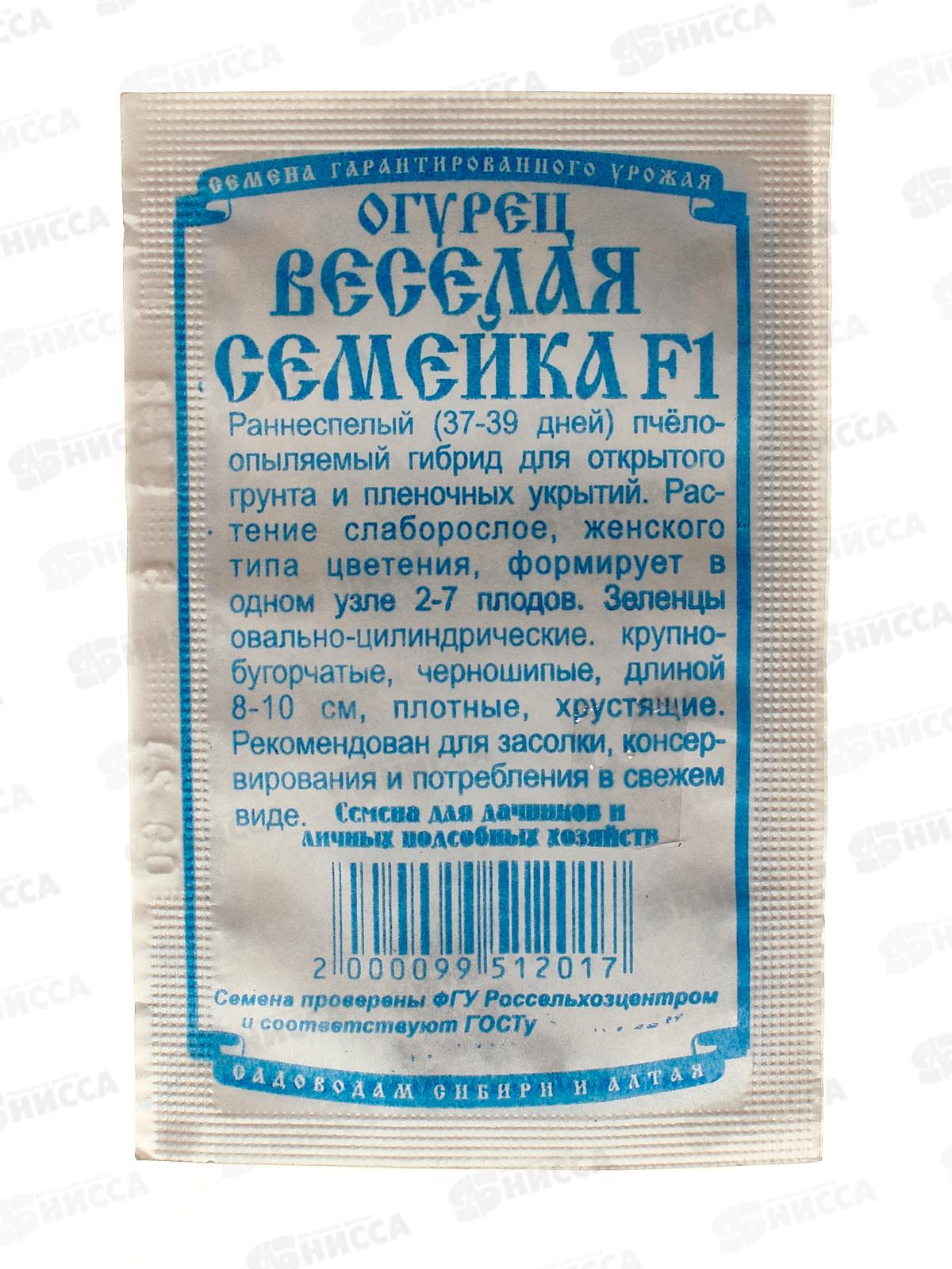 Код:109946; Огурец Веселая семейка F1 (5шт белый пакет) ДемСиб *20 +