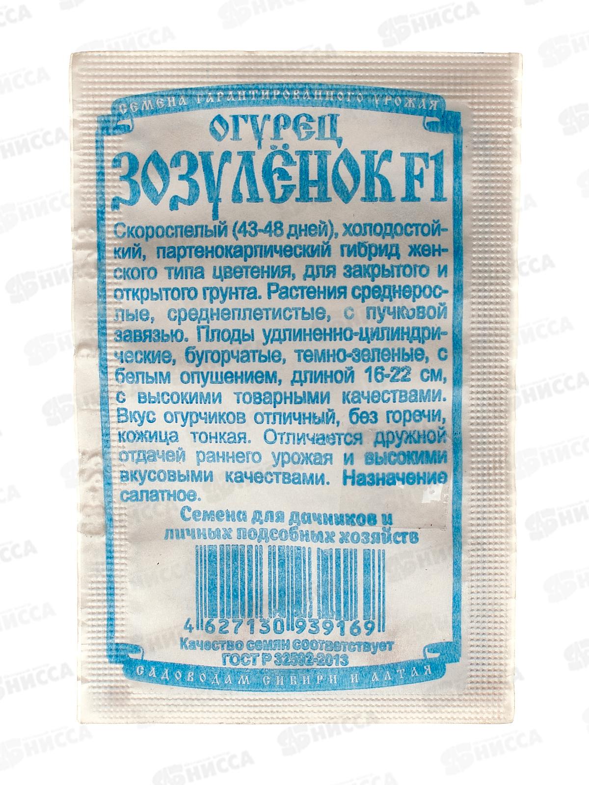 Код:017763; Огурец Зозуля F1 (8шт) ДемСиб *10 +