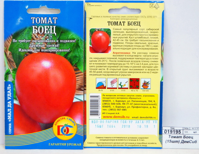 Код:019195; Томат Боец (15шт) ДемСиб*10 +