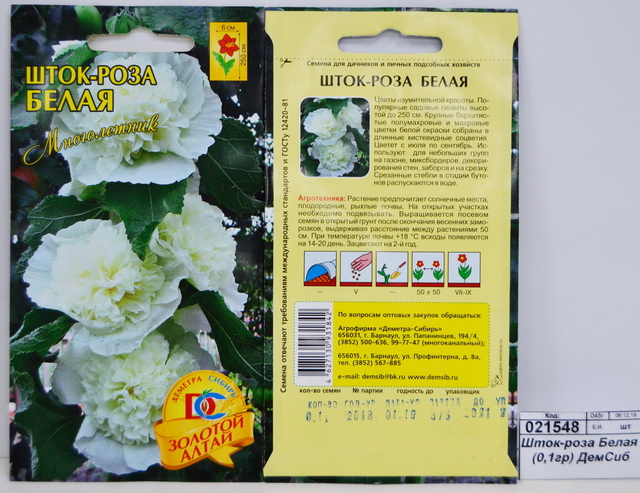 Код:021548; Шток-роза Белая (0,1грамм) *10 ДемСиб +