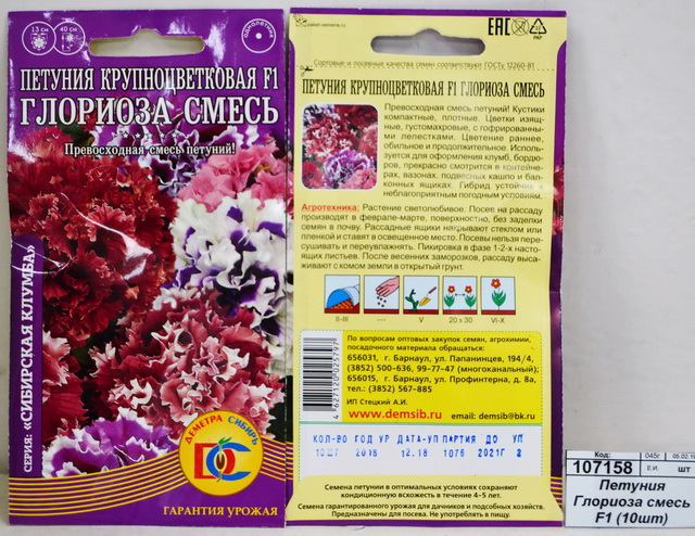 Код:107158; Петуния Глориоза смесь F1 ДемСиб *10