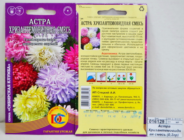 Код:016129; Астра Хризантемовидная смесь (0,2грамм) ДемСиб +