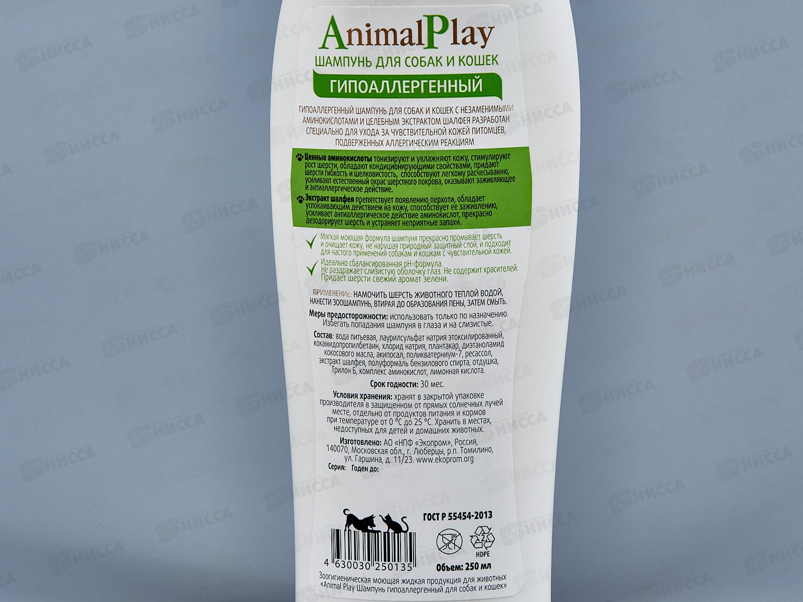 Шампунь Animal Play Гипоаллергенный для собак и кошек 250мл *12