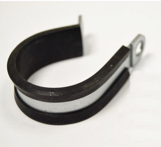 Соединительная скоба выполнена в виде кольца, концы которого стягиваются резьбовым затяжным устройством. Изделие ставят на трубах различного диаметра, т. к. есть возможность изменять диаметр охвата. Хомут стали применять, когда проволочные крепления труб к стене стали причиной пережима и появления трещин.