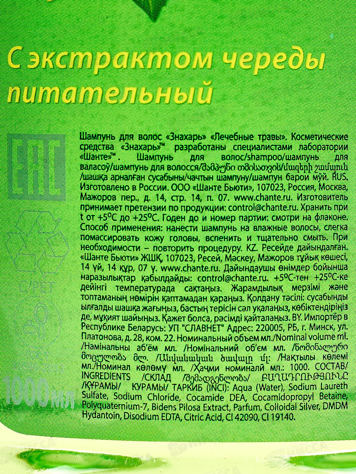 ЗНАХАРЬ шампунь для волос Лечебные травы 1литр *9 01214