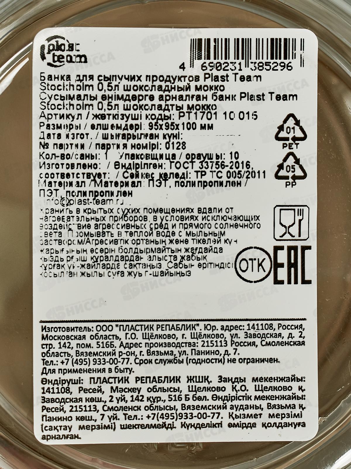Банка д/сып прод 0,5л "Plast Team" шок мокко РТ170110015 *12