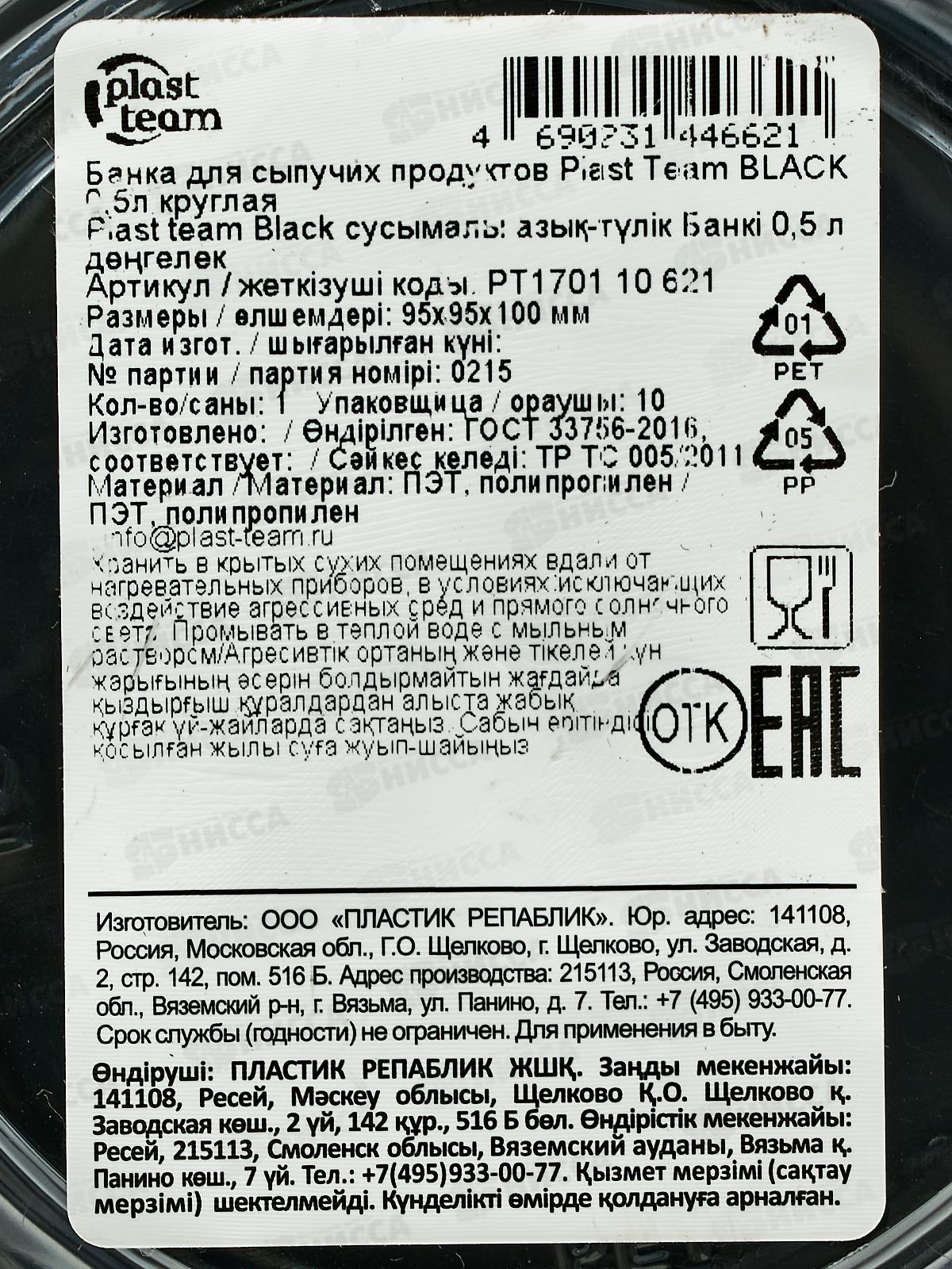 Банка д/сып прод 0,5л "Plast Team" круглая Блэк РТ170110621 *12