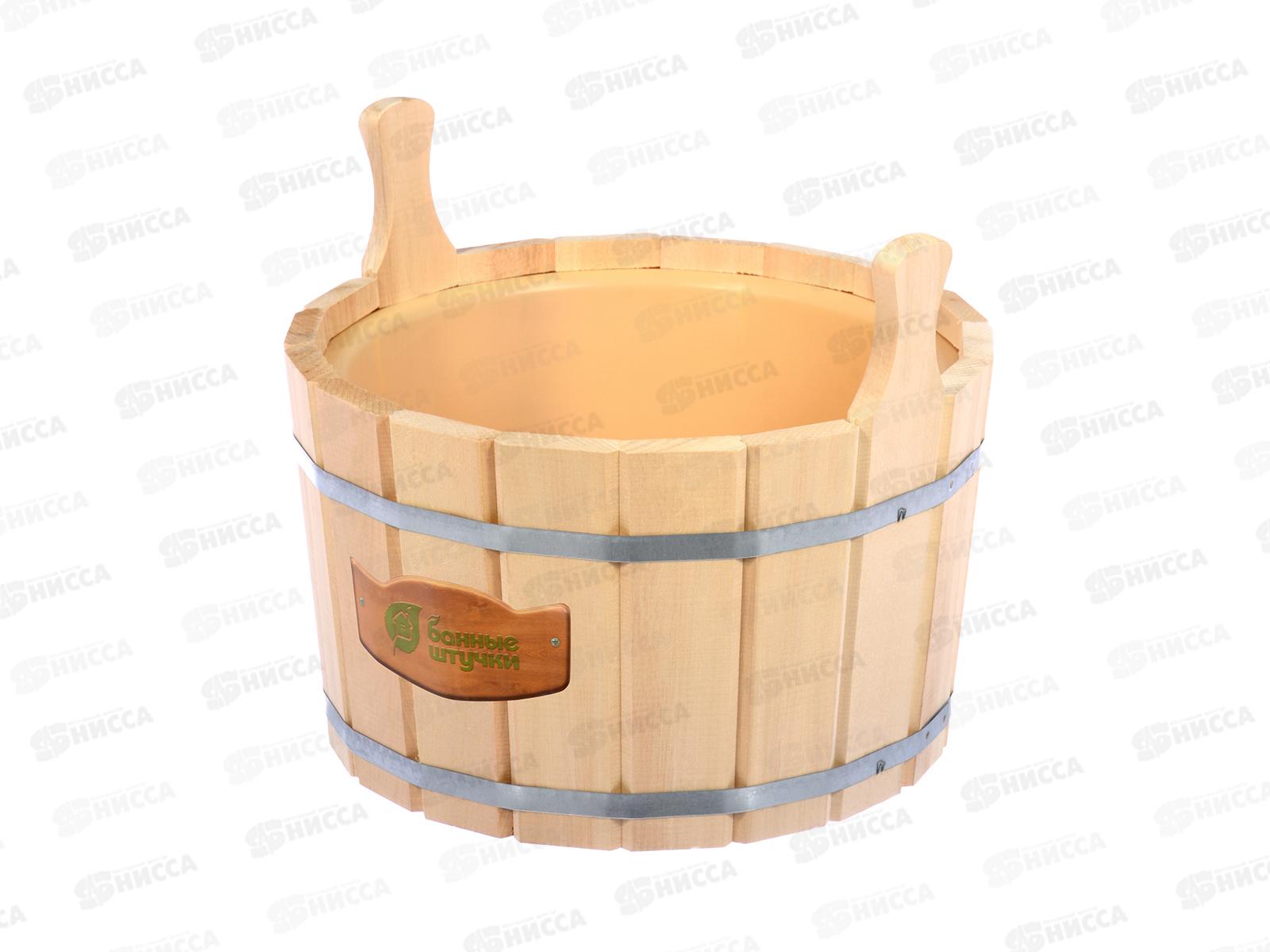 Код:293024; Ушат "шайка" 12л липа с пластиковой вставкой "Банные штучки" в коробке 32692 *1