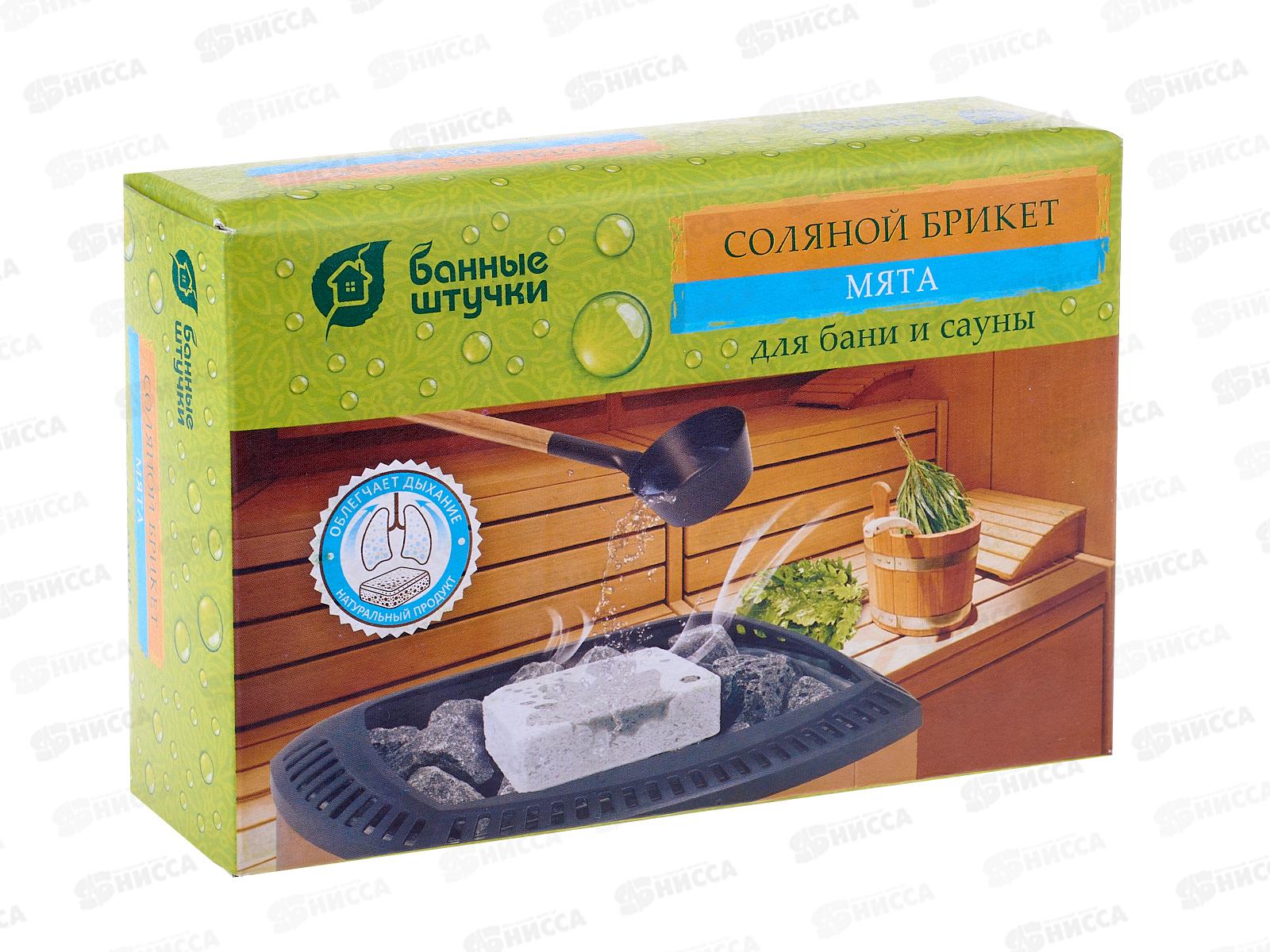 Соляной брикет с травами Банные Штучки Мята, 1300 г 32402 используется в бане или сауне. Соль осаждается тонким слоем на коже, обеспечивая мягкое очищ...