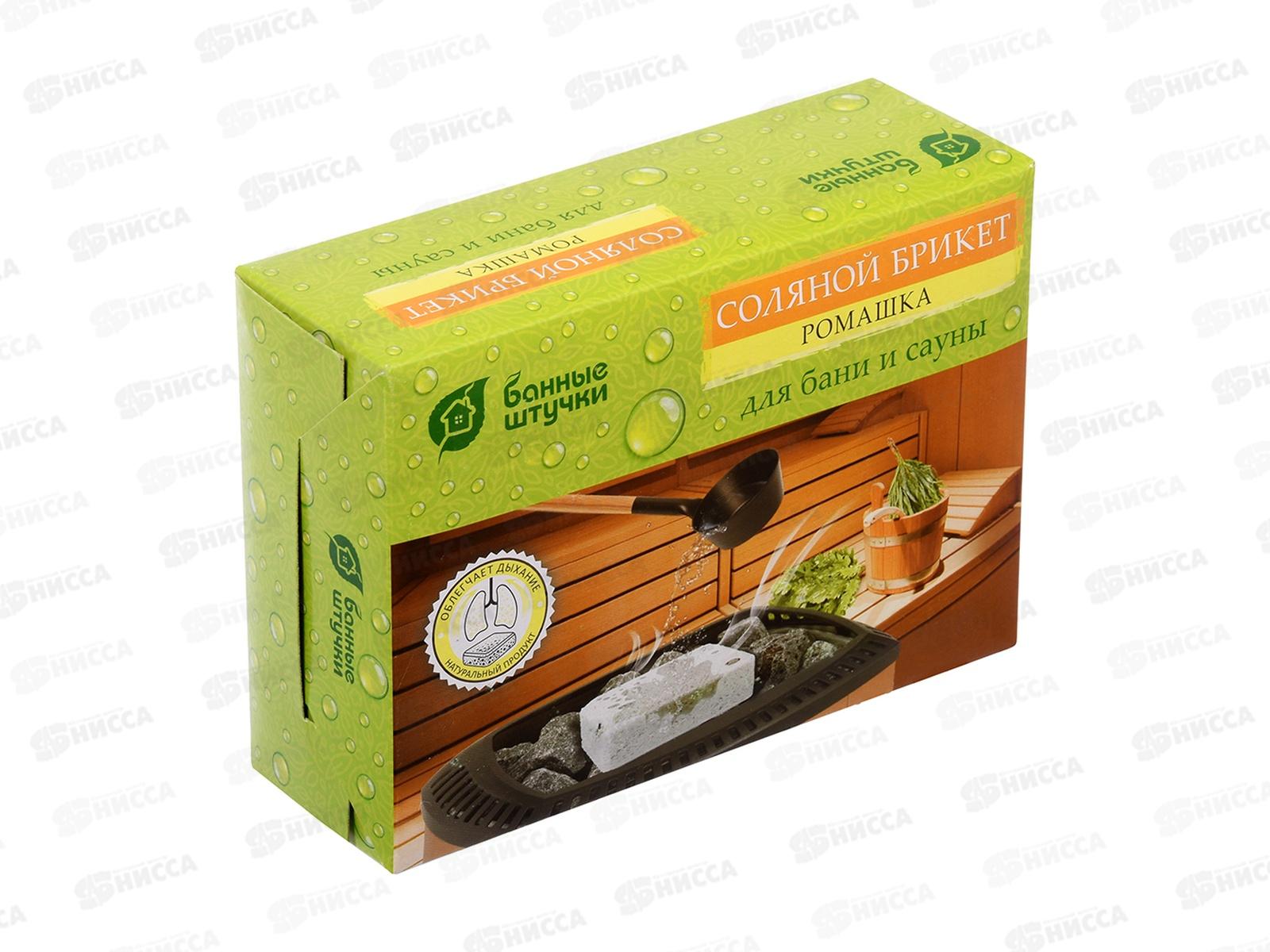 Соляной брикет с травами Банные Штучки Ромашка 1300 г 32401 используется в бане или сауне. Соляные пары хорошо очищают дыхательные пути. Ромашка успок...