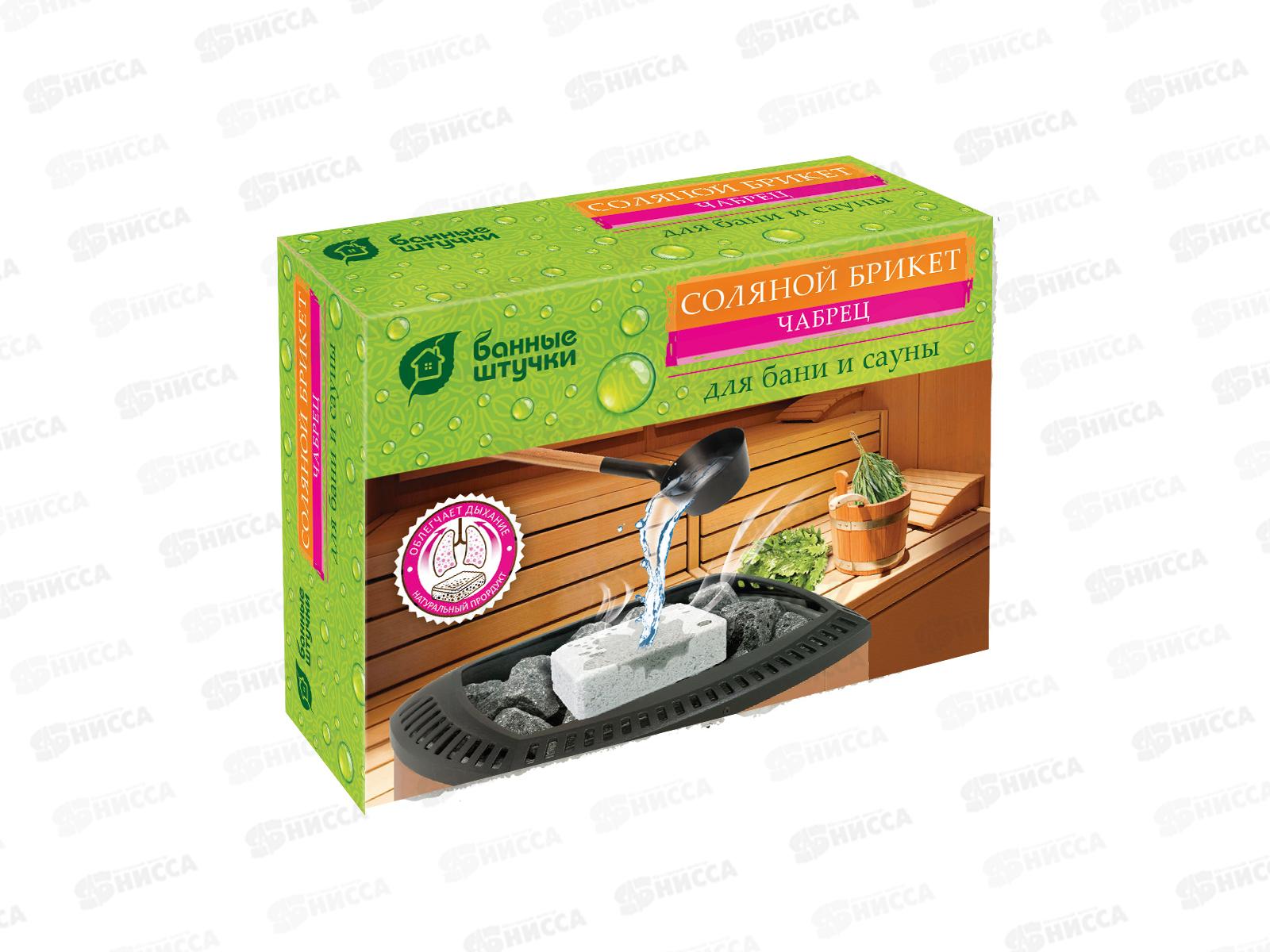 Соляной брикет с травамиБанные Штучки Чабрец, 1300 г 32403 используется в бане или сауне. Соль осаждается тонким слоем на коже, обеспечивая мягкое очи...