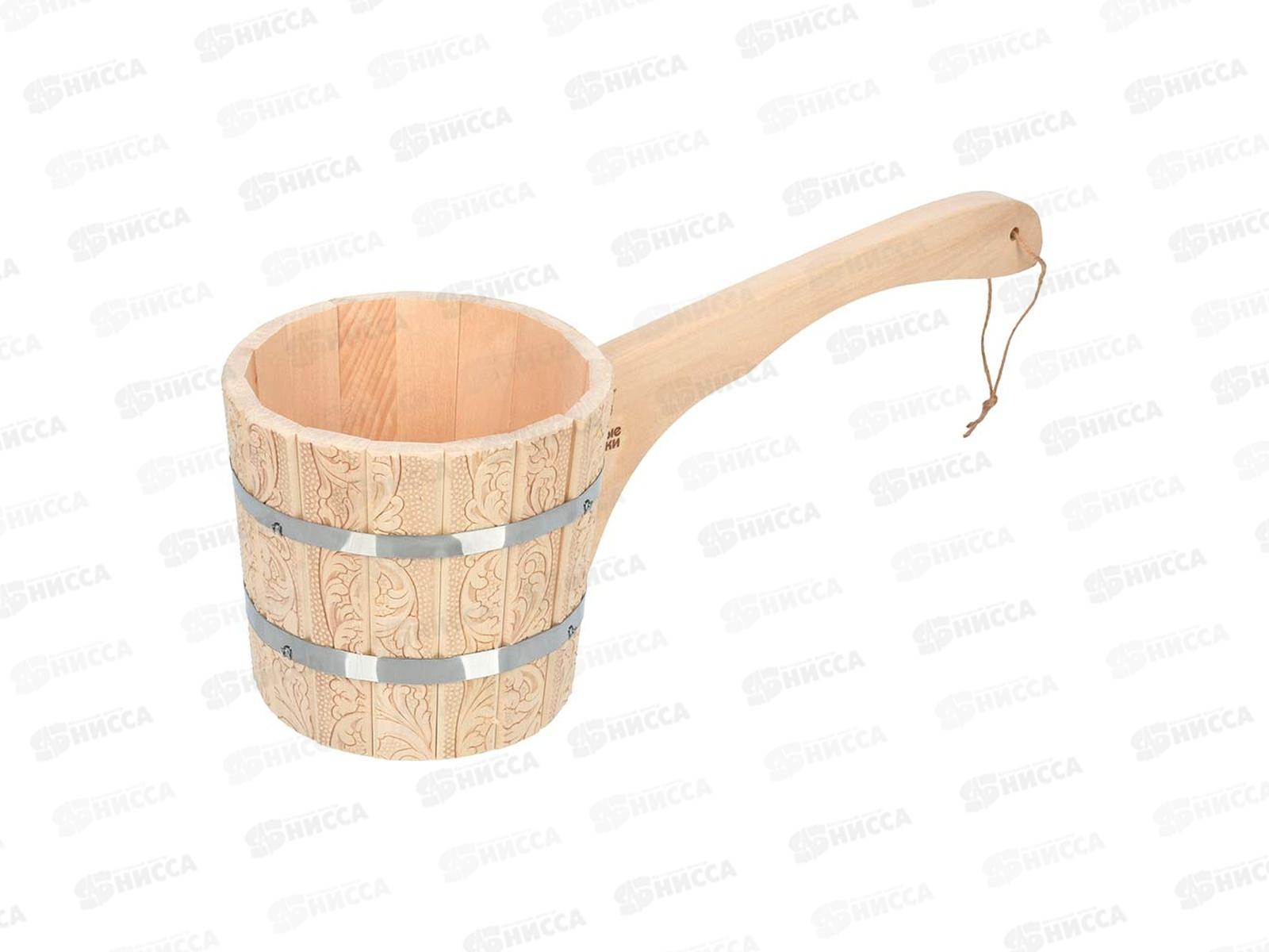 Код:360742; Ковш-черпак для бани 1,5литра бондарный Цветы с динная ручка Банные штучки *5