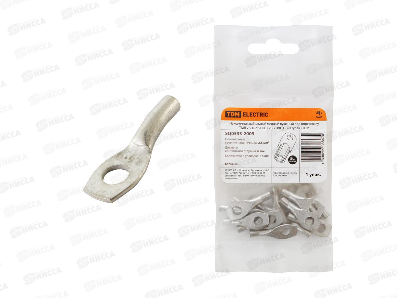 Код:249457; Наконечник медный луженый под опрессовку ТМЛ2,5-6-2,6 15шт TDM, 2009