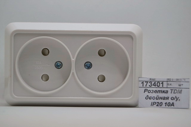 Код:191060; Розетка TDM двойная открытой установки, IP20 10А белый "Ладога", 0017 *10/200