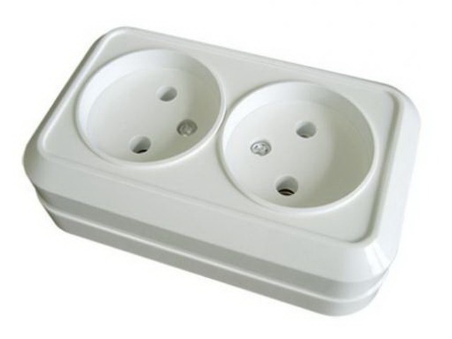 Код:173401; Розетка TDM двойная открытая установка, IP20 10А керамика, белая, "Ладога", 0112 *10