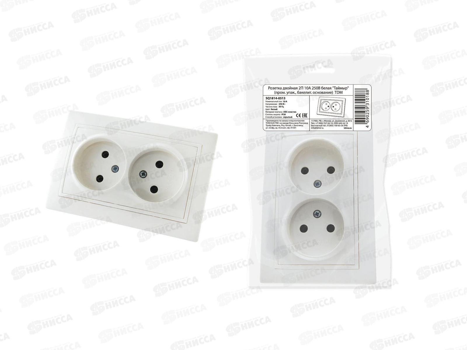 Код:249467; Розетка TDM двойная скрытой установки 10А 250В белая Таймыр бакелитовая 0513
