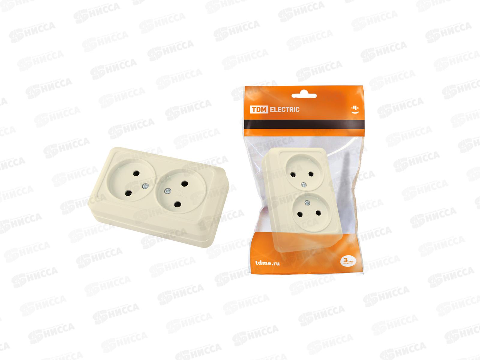 Код:414263; Розетка TDM двойная открытой установки, IP20 16А слоновая кость "Ладога", 0020 *10