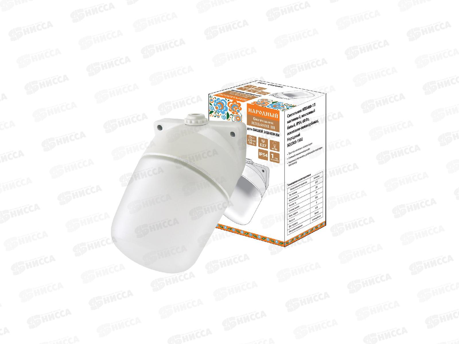 Код:290383; Светильник НБП400-1П настенный, наклонный белый, IP54, 60Вт, основание-поликарбонат, серия "Народный"