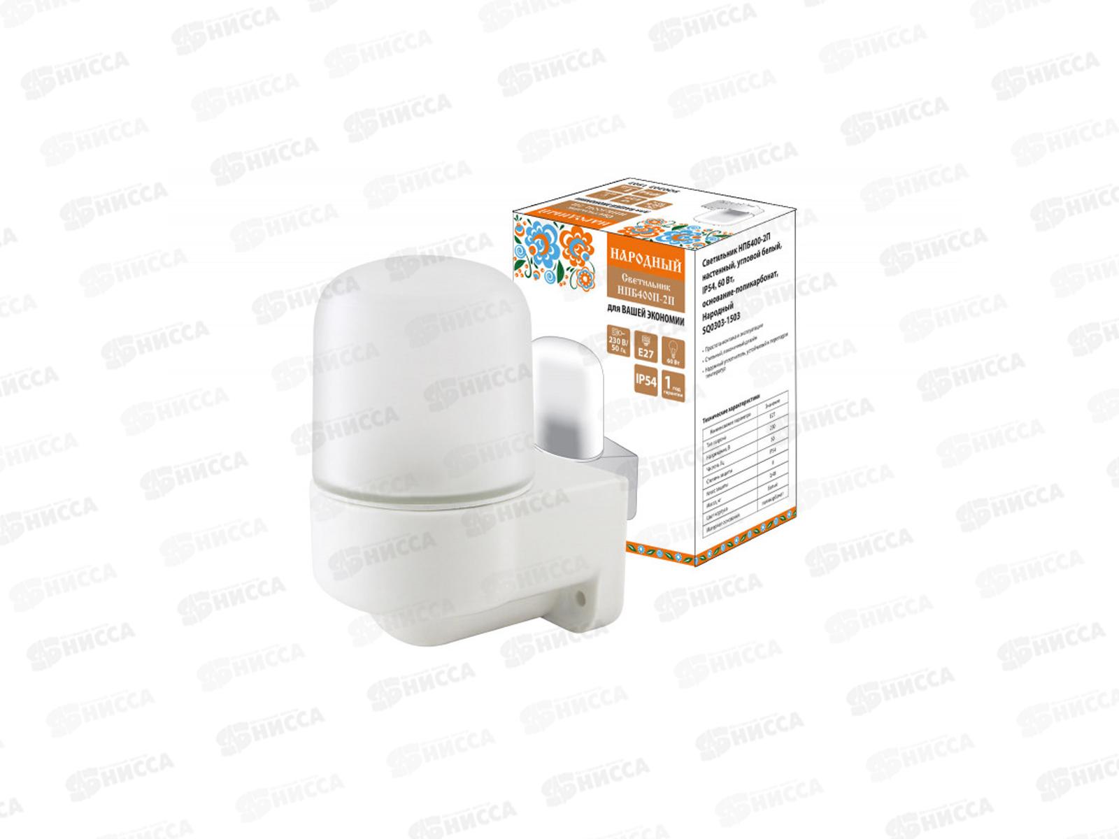 Код:290396; Светильник НБП400-2П настенный, угловой белый, IP54, 60Вт, поликарбонат, серия "Народный"