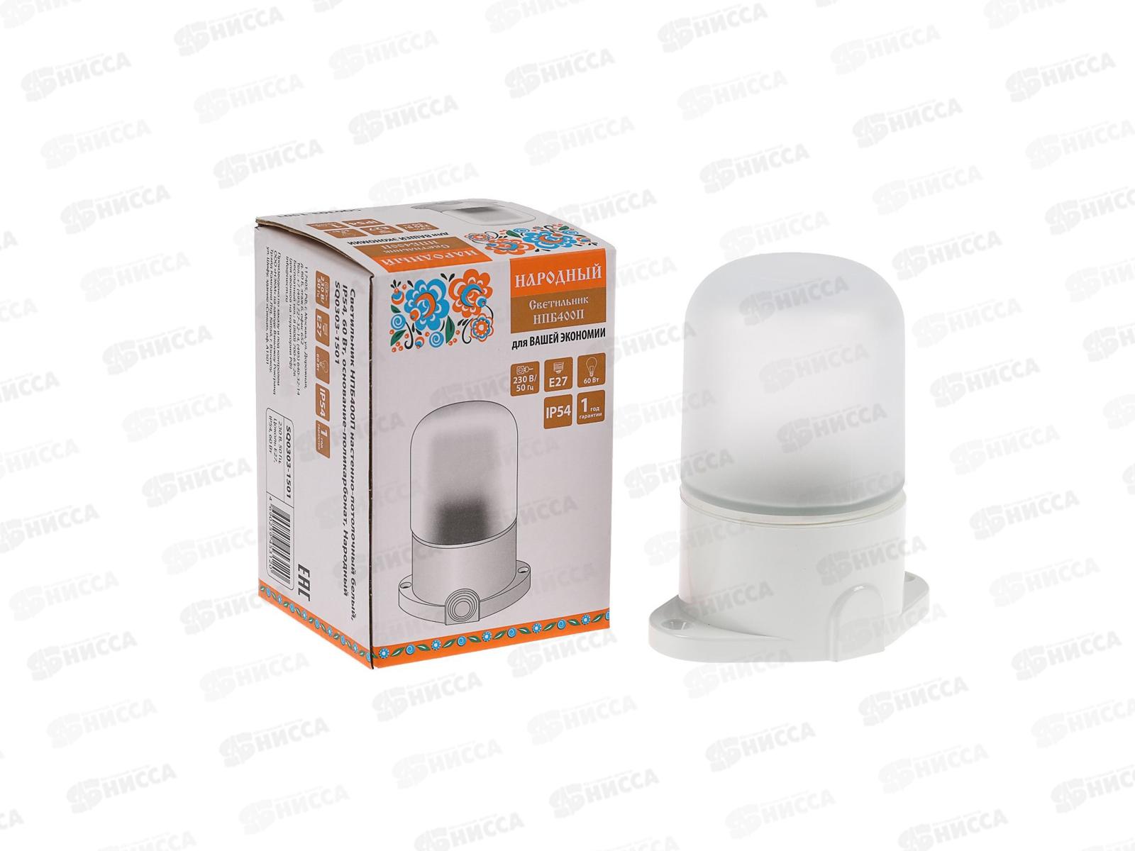 Код:290397; Светильник НБП400П настенно-потолочный, белый, IP54, 60Вт, поликарбонат, серия "Народный"