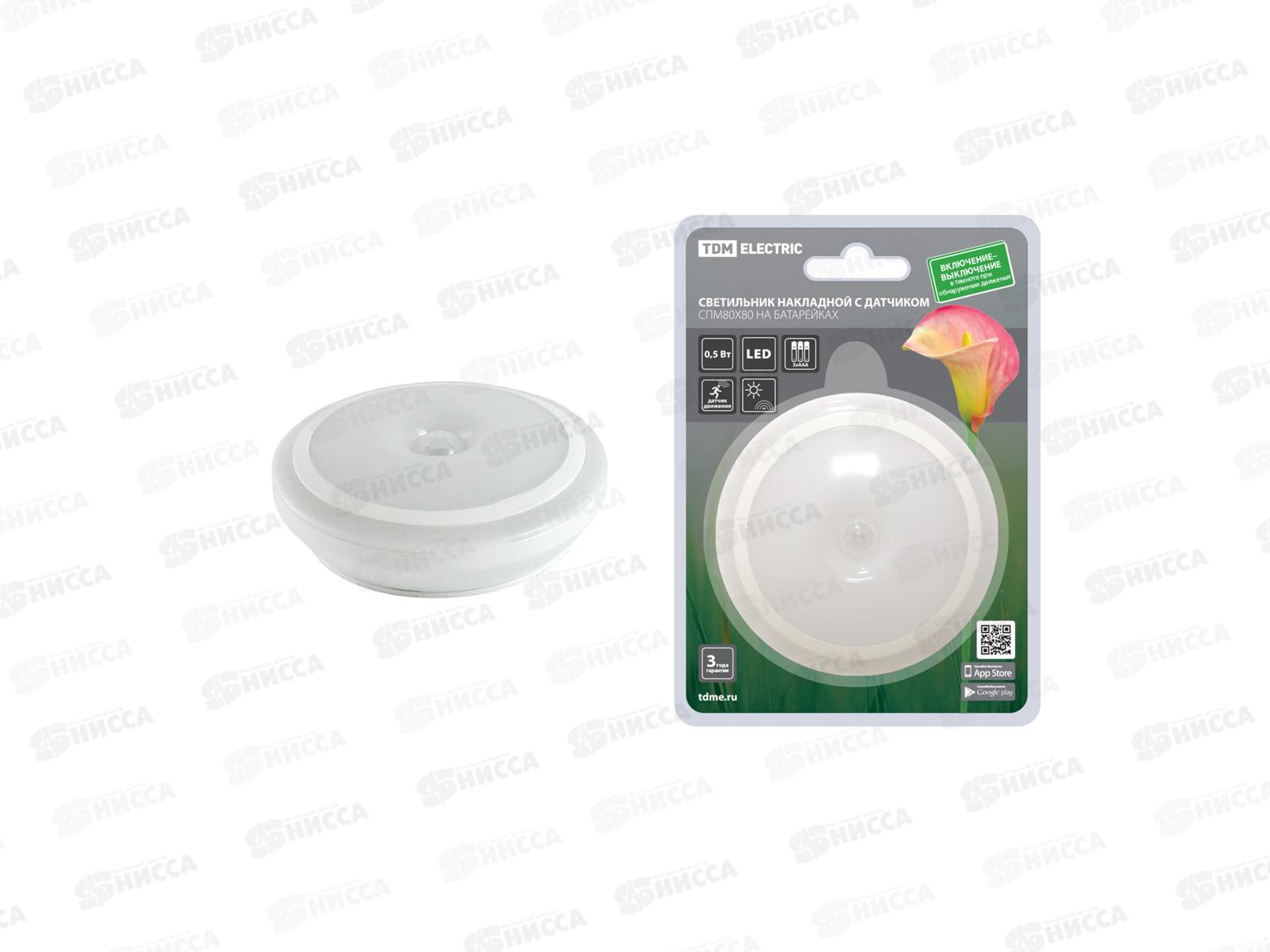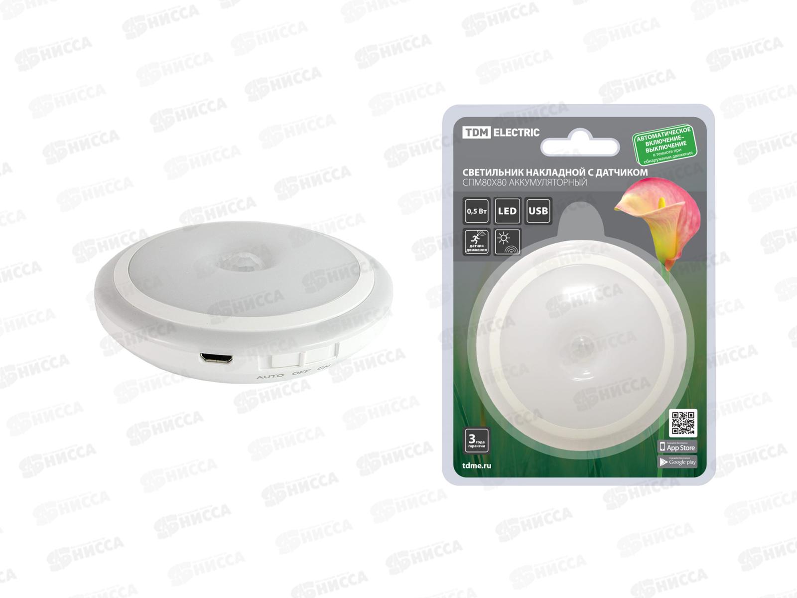 Код:466621; Светильник накладной светодиодный 80х80, 0,5 Вт, Li-Pol 3,7 В 0,6 А*ч, датчик движения и освещения, USB, TDM, 3615 *72