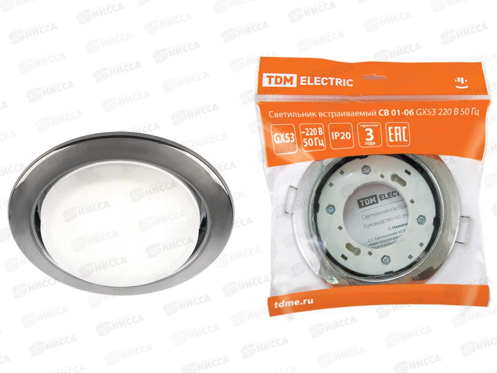 Код:567136; Светильник встраиваемый СВ 01-06 GX53 чёрный хром TDM, 0061 *100