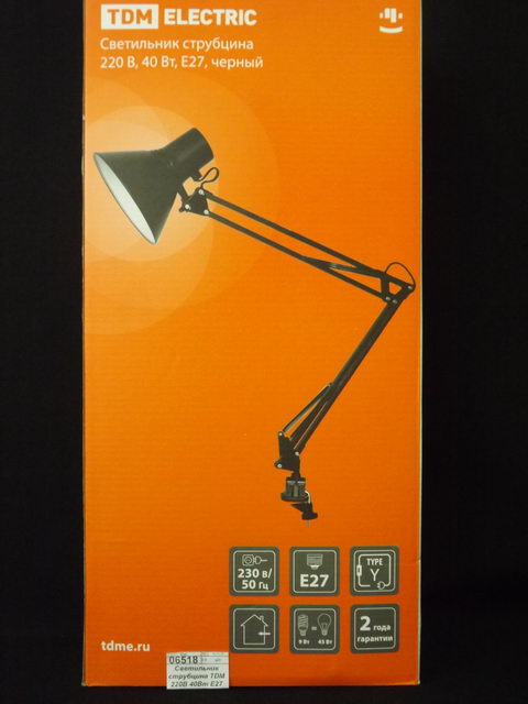 Код:006518; Светильник струбцина TDM 220В 40Вт E27 черный