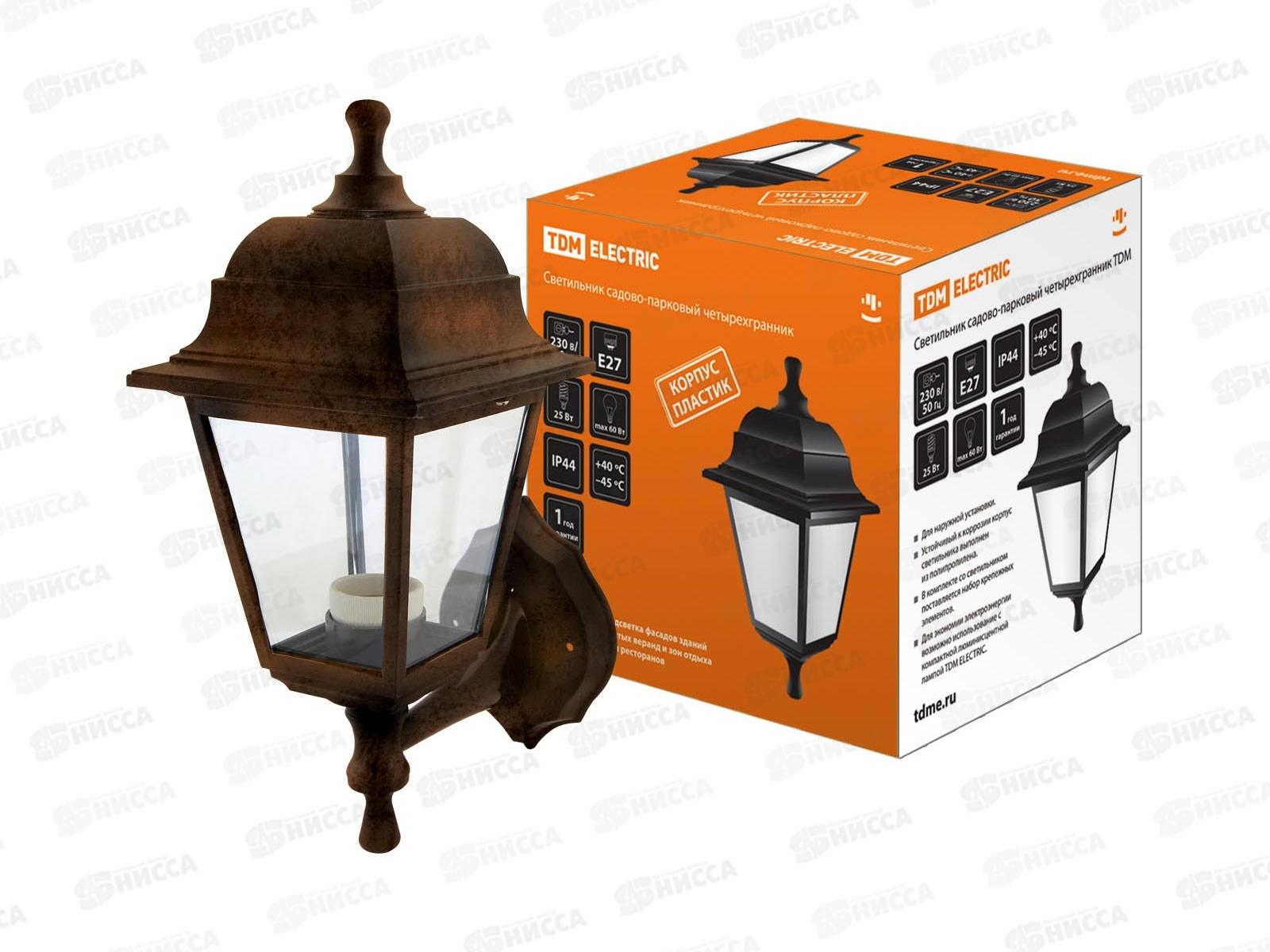 Код:158203; Светильник садовый TDM НБУ04-60-001 настенный, четырехгранный, пластик, медь, 0724