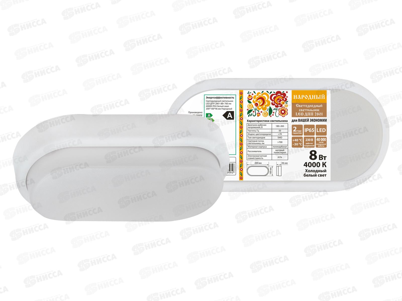 Код:264592; Светильник светодиодный Народный ДПП-2801 8Вт 4000К IP65, овал, 0814