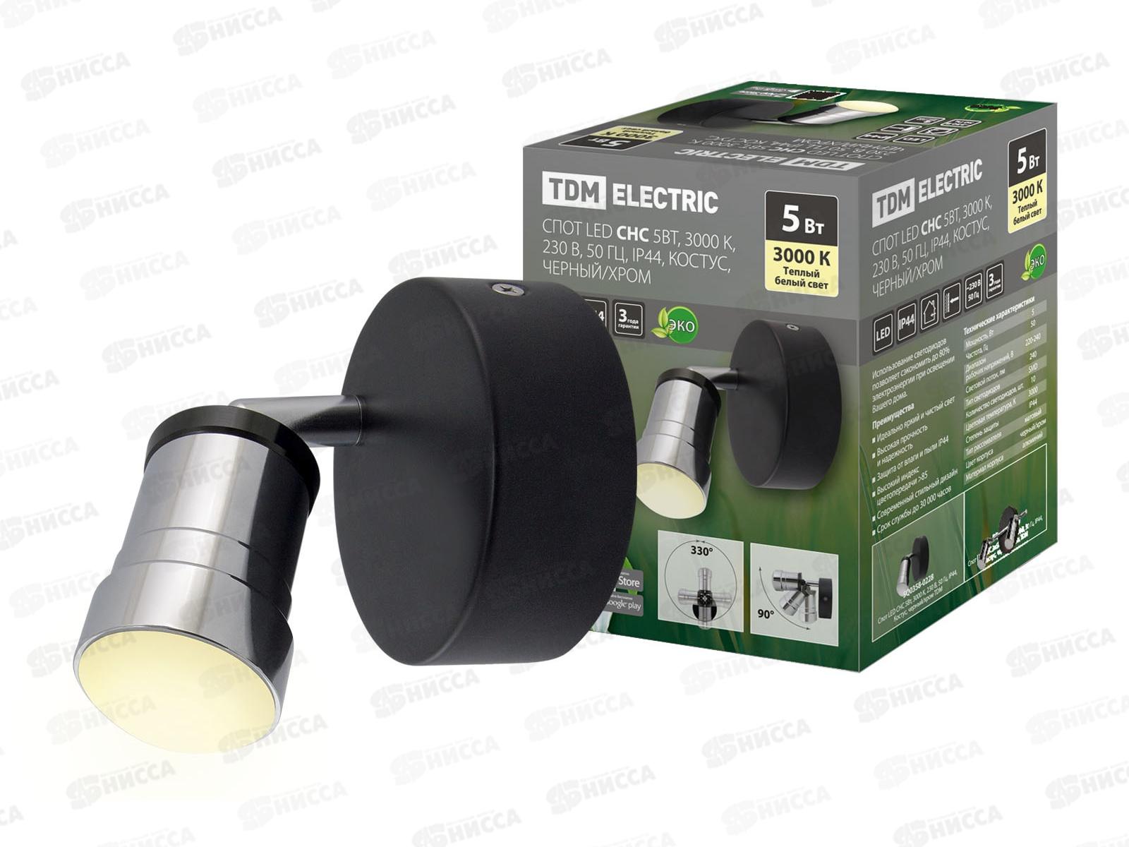 Код:323250; Светильник светодиодный Спот LED СНС 5Вт, 3000 K, 240Лм, 50 Гц, IP44, Костус, черный/хром TDM, 0228 *24