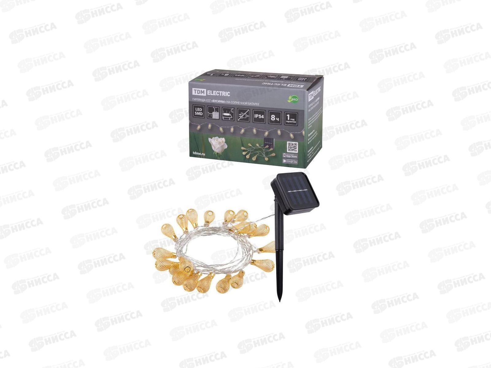 Код:411556; Светильник ССГ гирлянда "Бусины" на солнечной батарее, 4 м, 20 LED, желтый, IP54, TDM, 0117