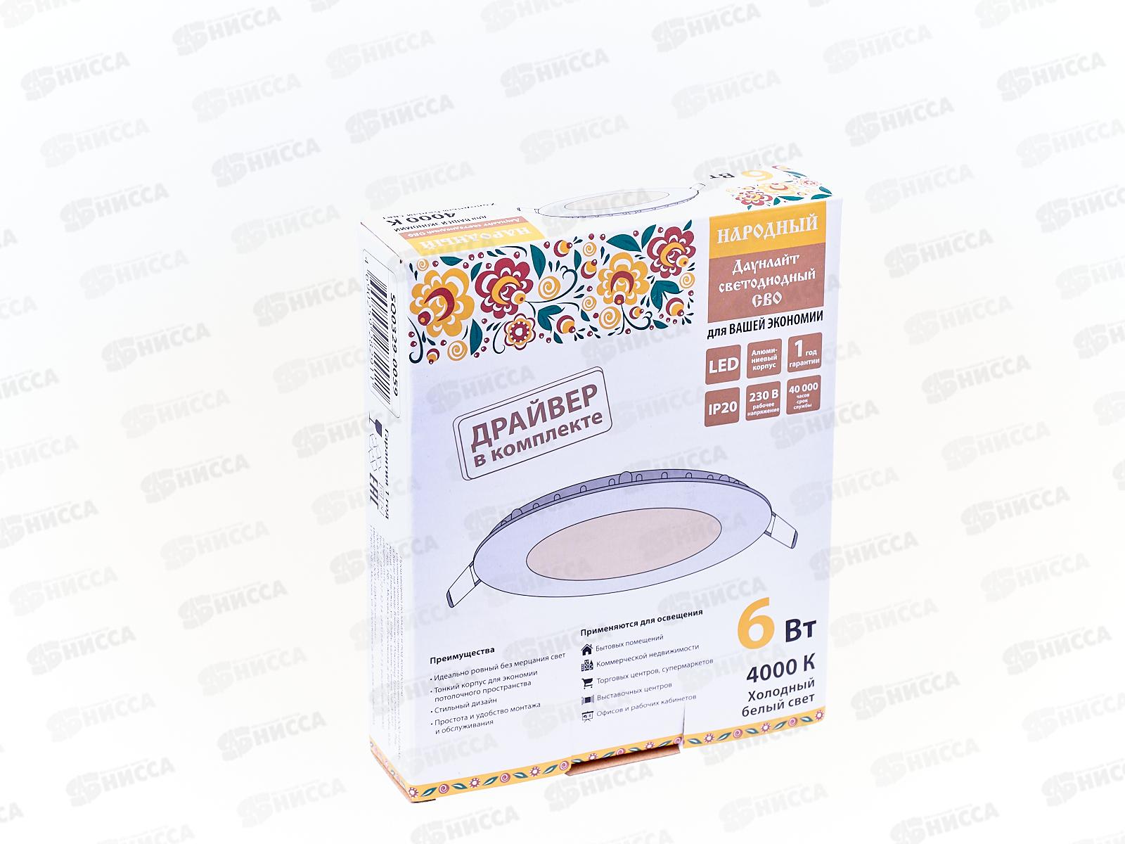 Код:290423; Светильник светодиодный LED ДСП02-6-001 6Вт 810Лм IP52, серия "Народный" *4