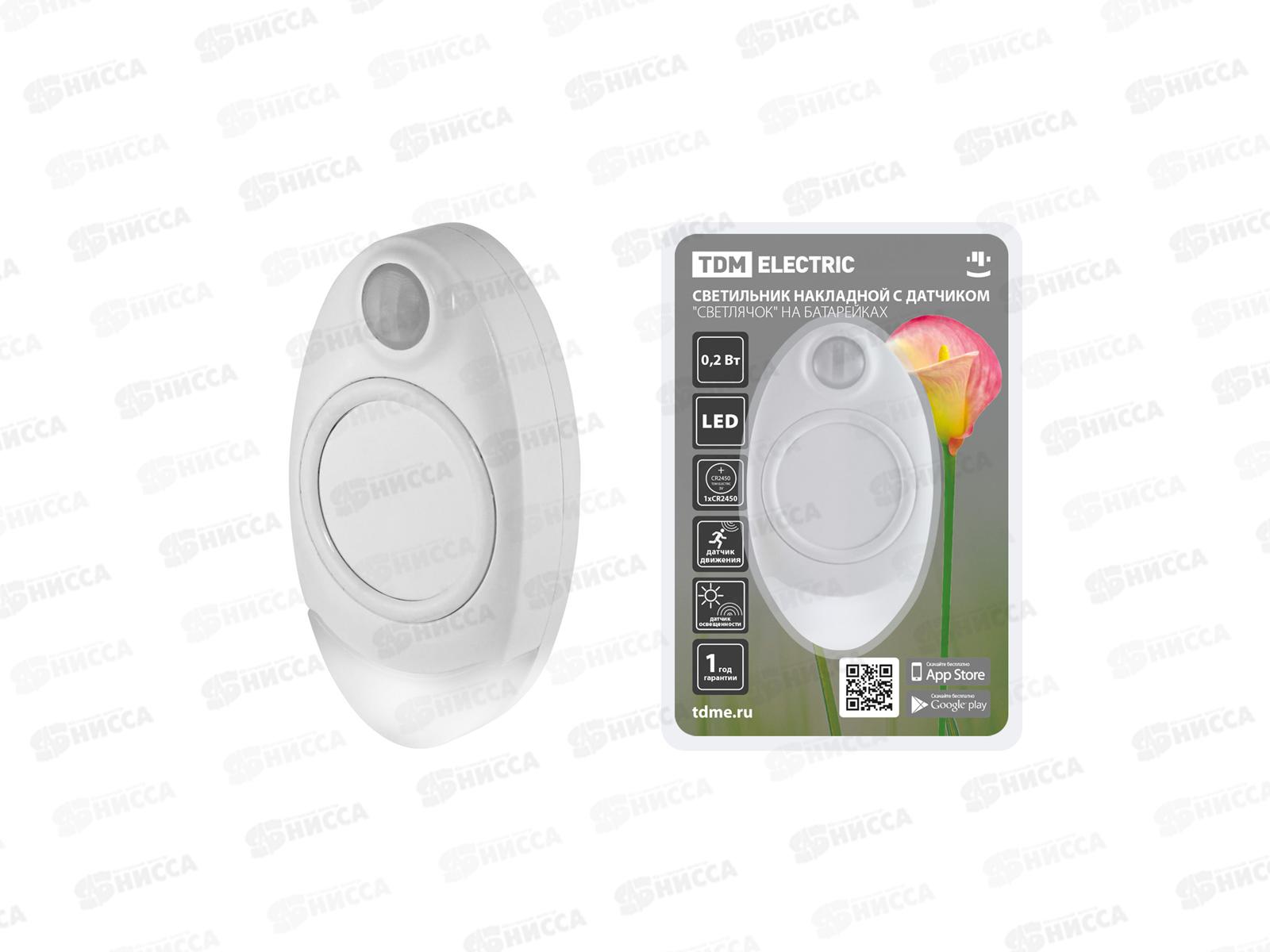 Код:466619; Светильник светодиодный накладной "Светлячок", 0.2Вт, 1xCR2450, датчик движения и освещения, 3611 *100