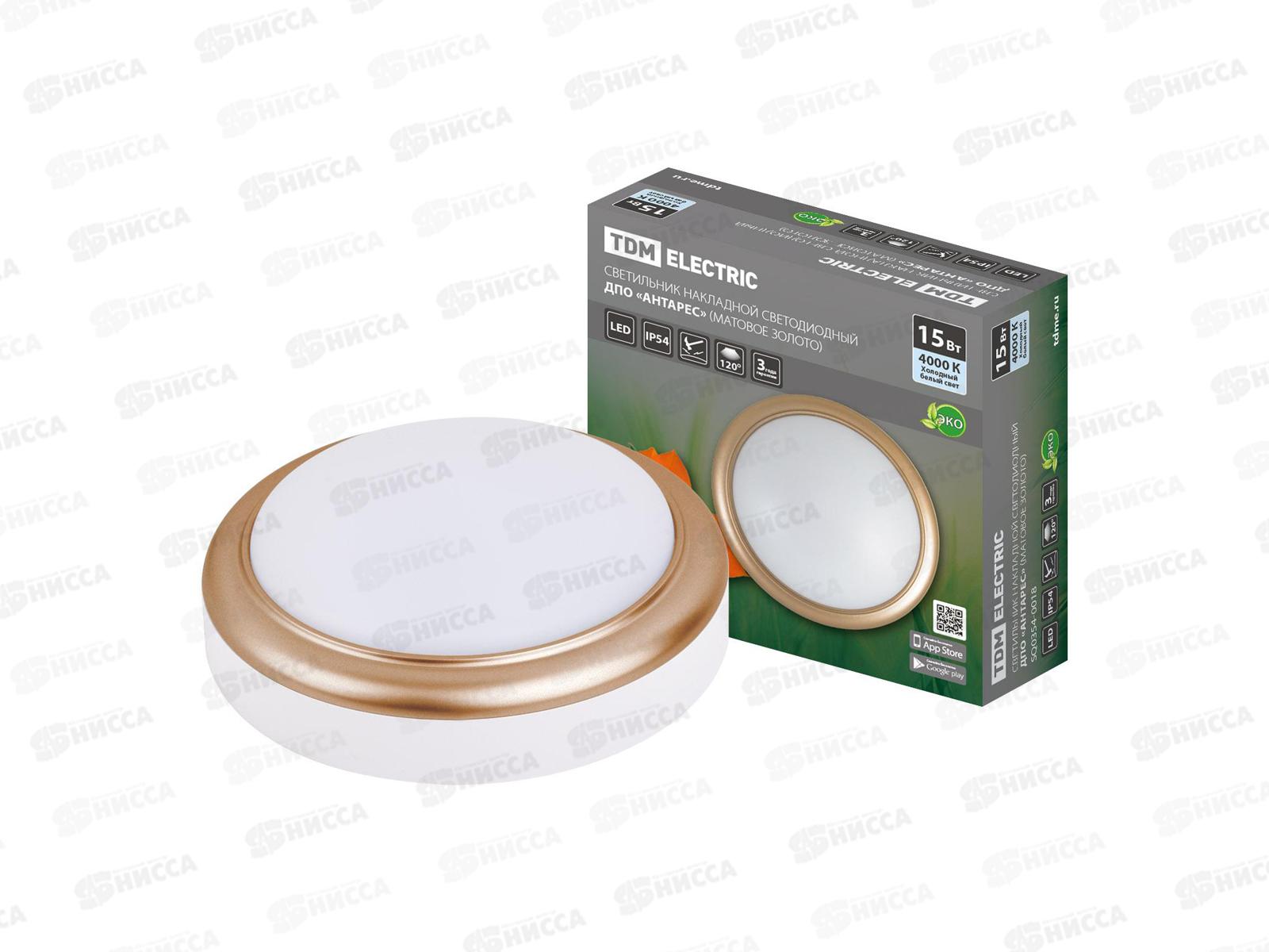 Код:601221; Светильник светодиодный TDM Антарес 15Вт 4000К круг 180*66мм золото IP54