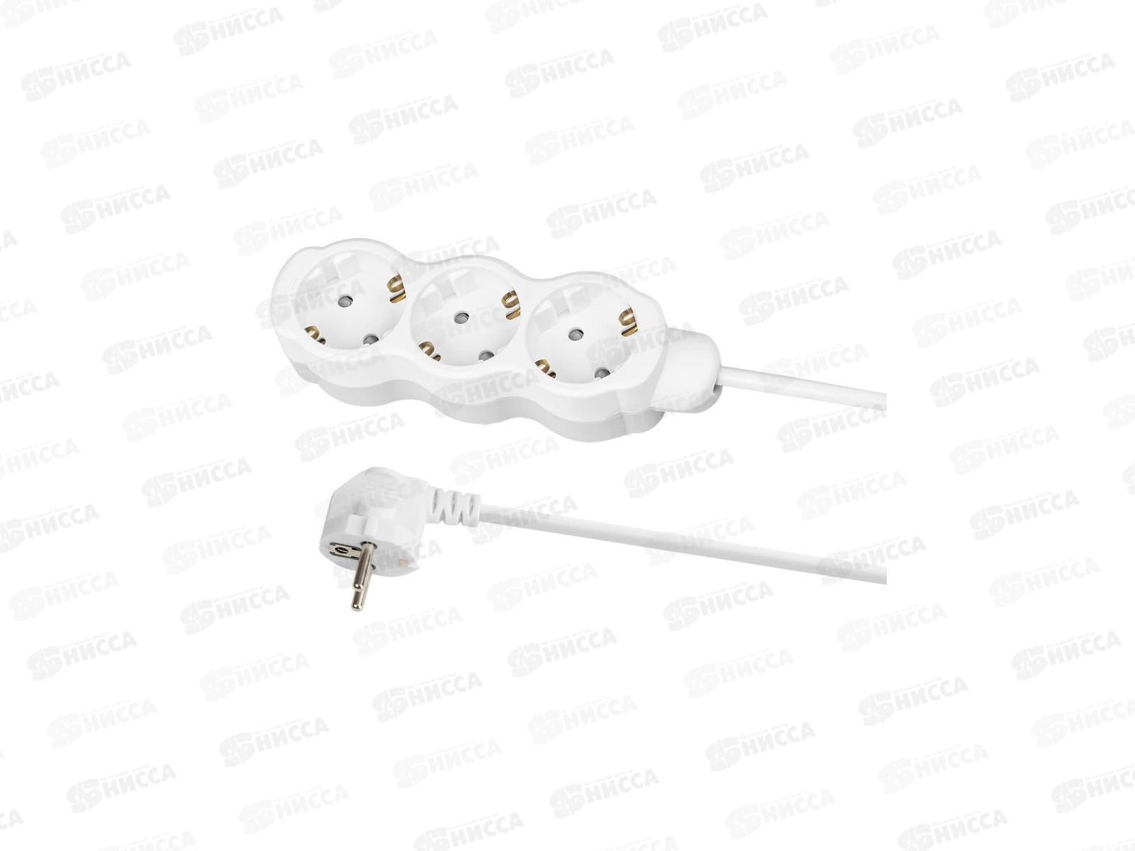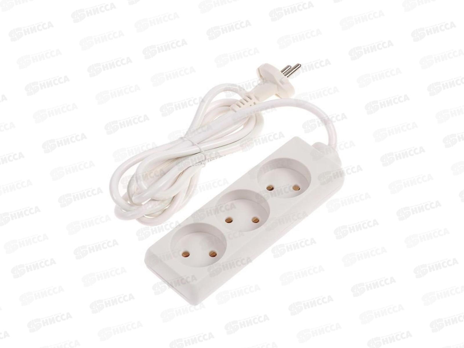 Код:547786; Удлинитель 3 гнезда, 5 метров, без заземления, 10 А, 2400 Вт, белый Народный 1312