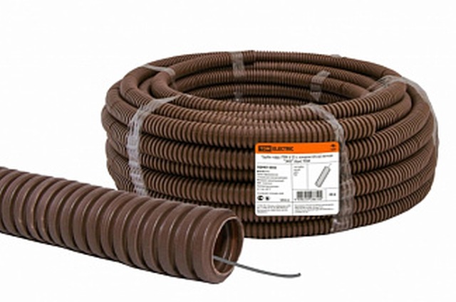 Код:206398; Труба гофрированная ПВХ d25 с зондом (25м) легкая, Бук, 0043 TDM *25