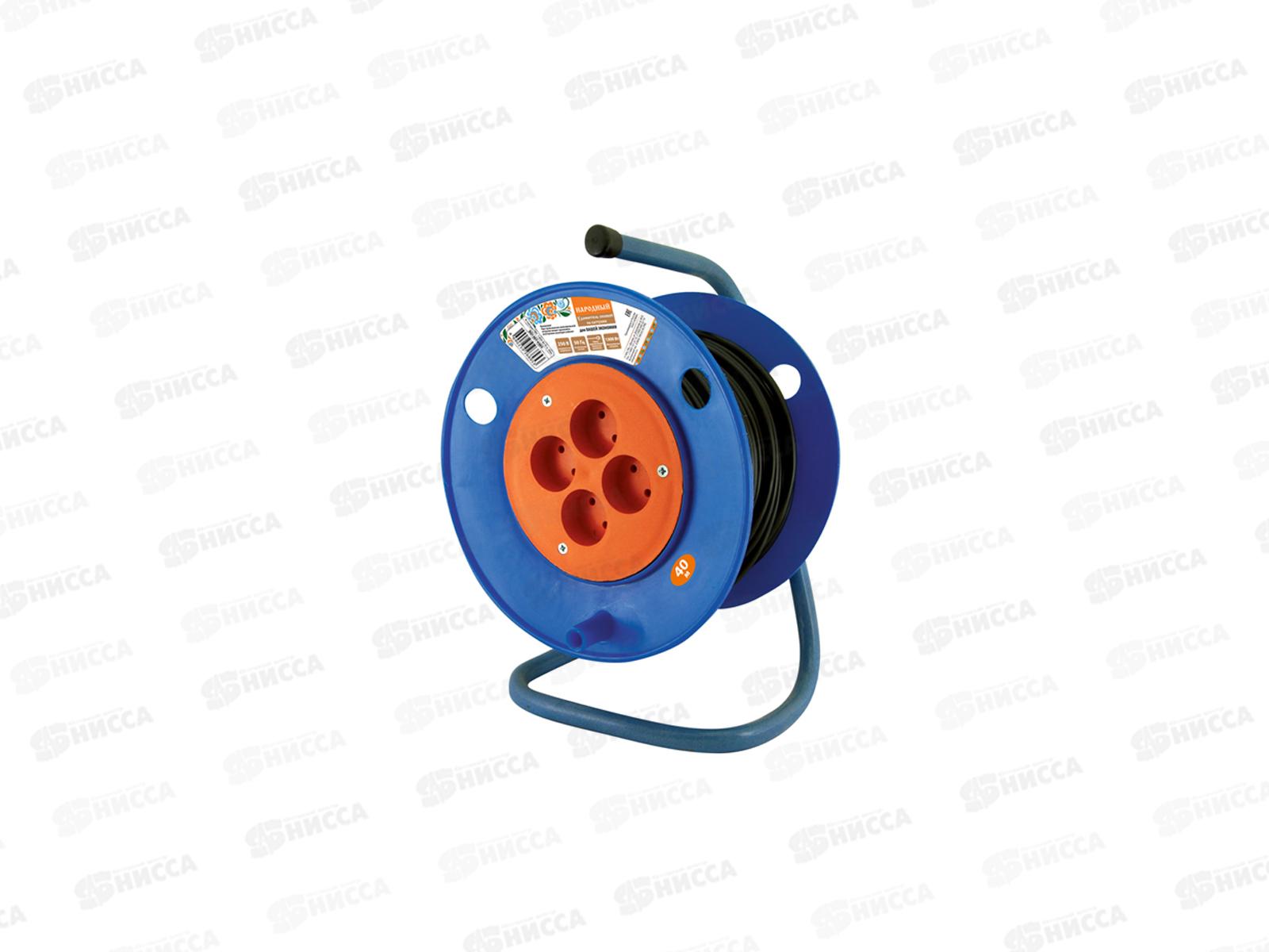Код:249480; Удлинитель на катушке силовой народный 4 гнезда ПВС 1300 Вт б/з, 40м, 0503