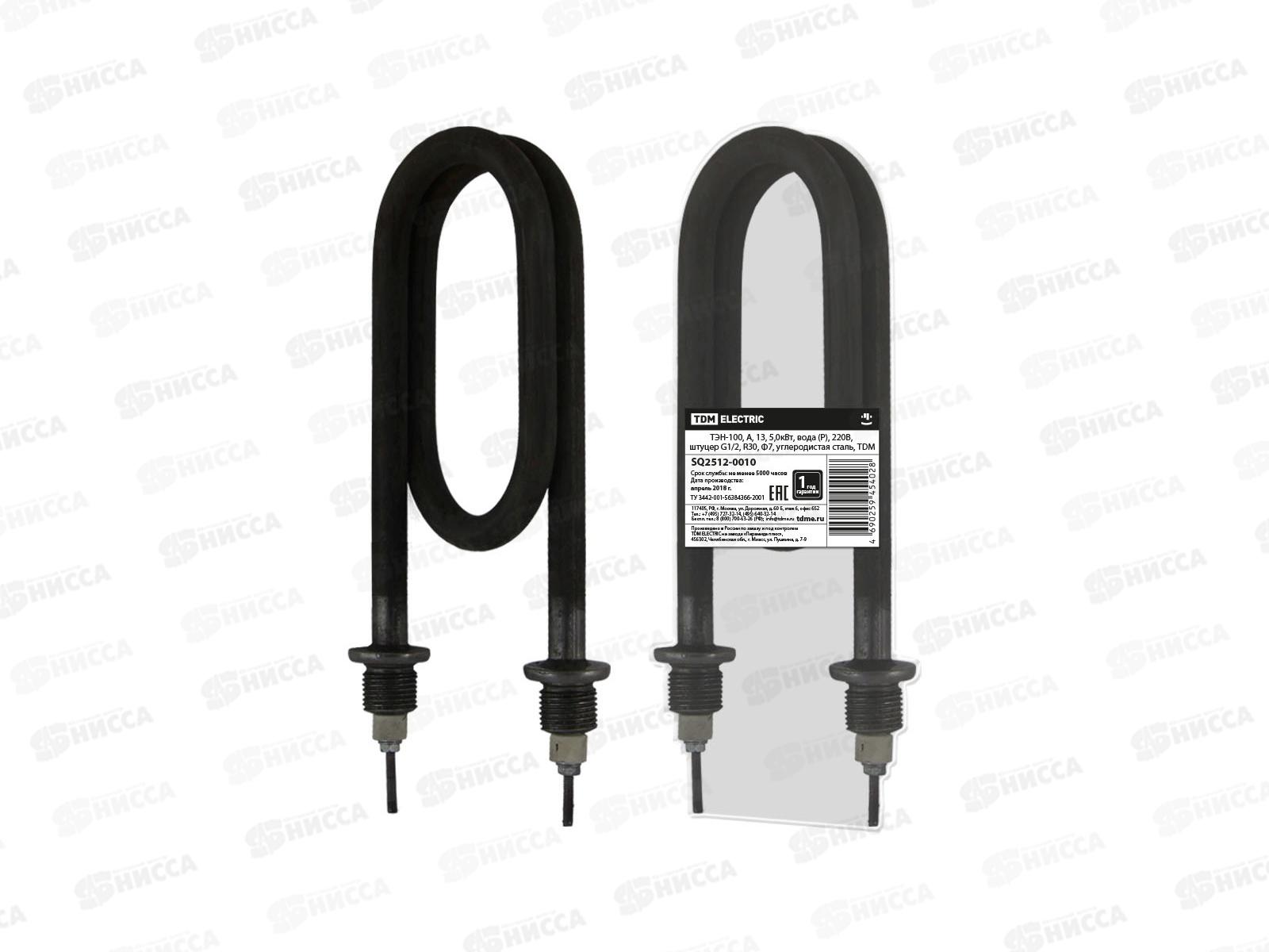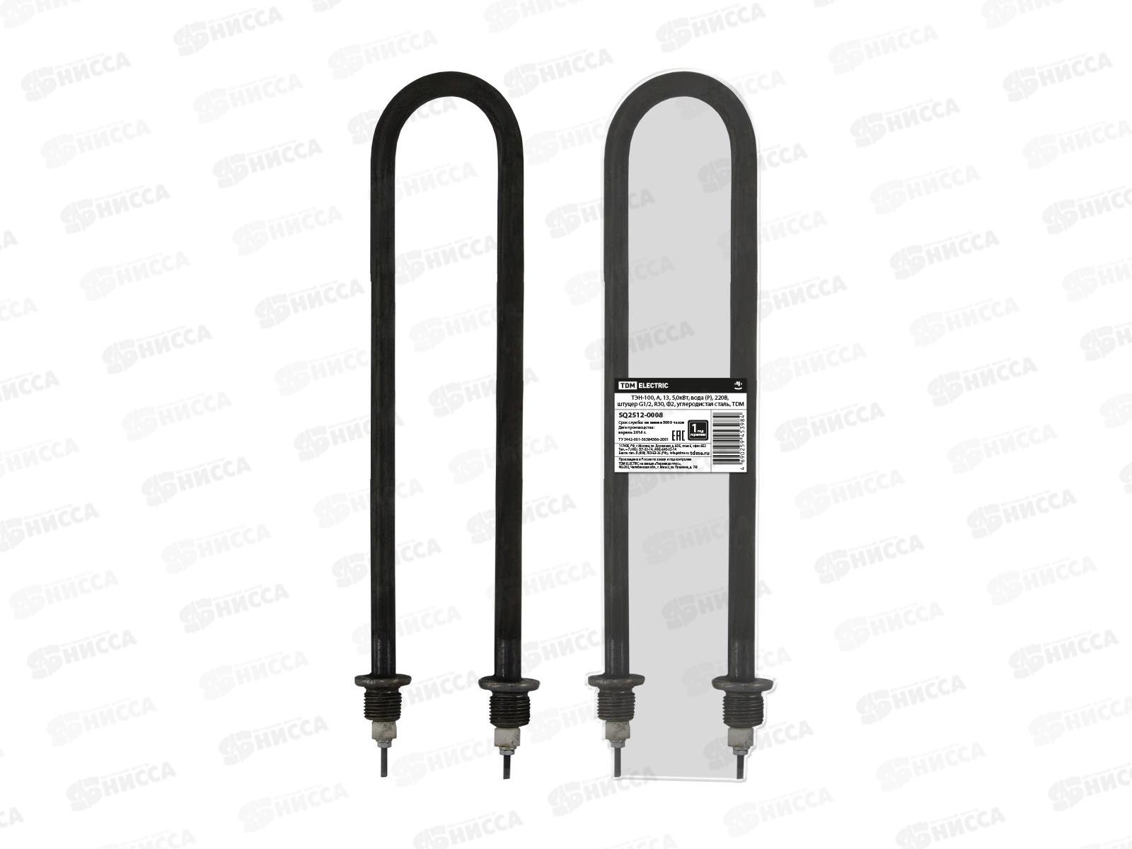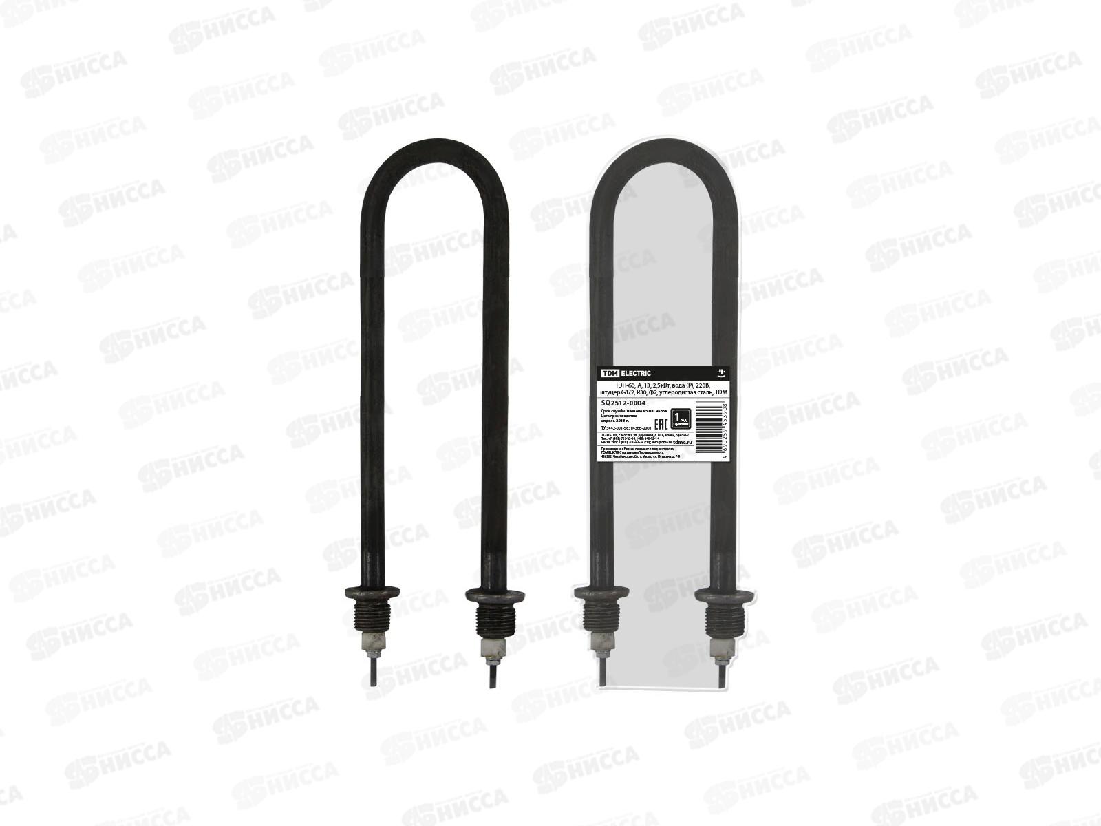 ТЭН TDM 60, А, 13, 2.5 кВт, вода (Р), 220В, штуцер G1/2, R30, Ф2, углеродистая сталь SQ2512-0004 применяется в водонагревателях, кипятильниках, котлах...